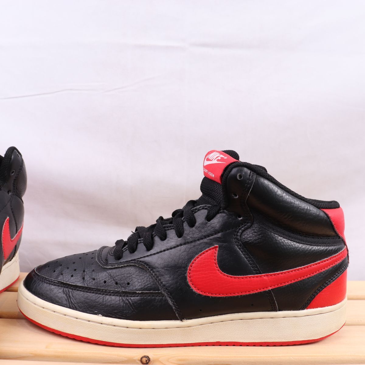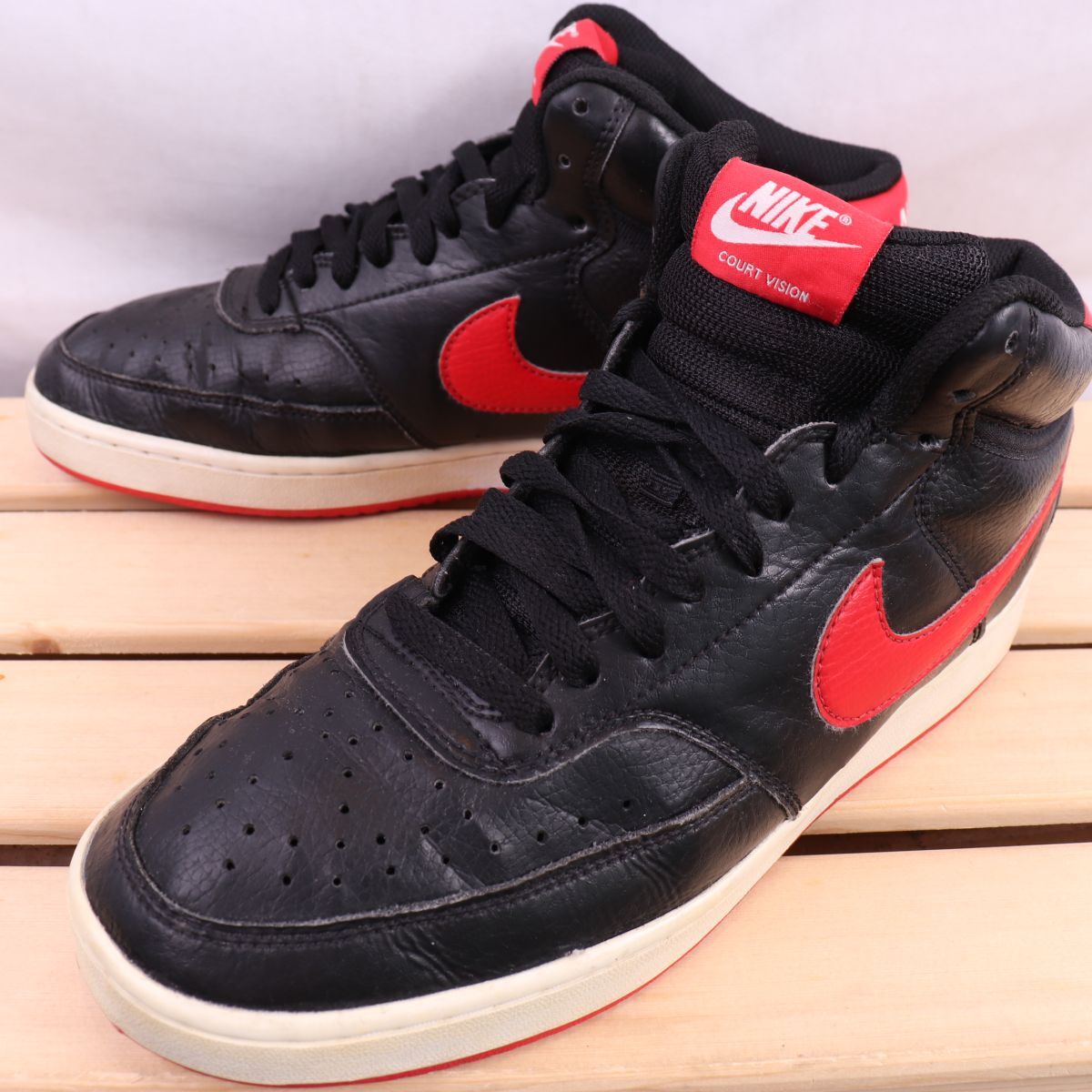 z2145 ナイキ コート ビジョン ミッド US8.5 26.5cm/黒 ブラック 赤 NIKE Court Vision Mid メンズ スニーカー 中古