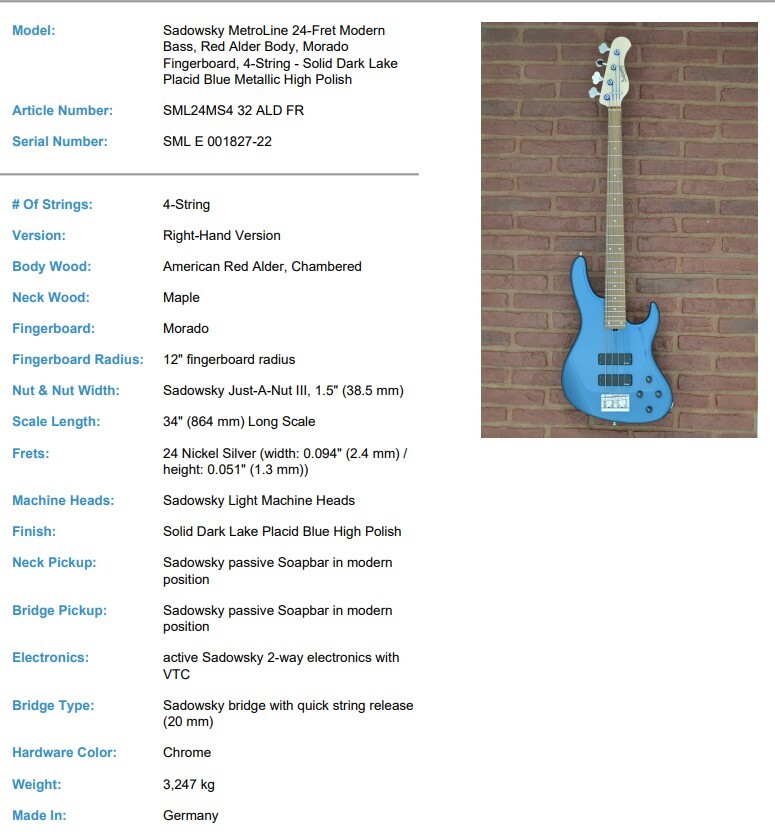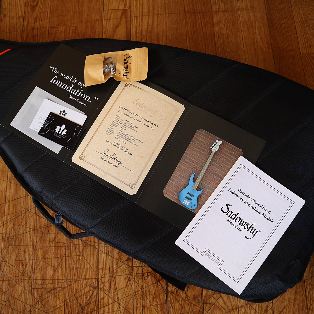 2022年ドイツ製。重量3.247キロの激軽個体。ヘッド先端に数か所の小傷が見られますが、ボディには全く使用感の無い新同品、フレットも100%、ネックの反り無し、ロッドも両方向にスムースに機能、電気系統も完璧、金属パーツのくもりも皆無の最高状態。これより軽量なサドウスキーは存在しないのではないでしょうか。羽の様に軽く、肩に全く負担がかかりません。書類一式、オリジナルストラップロック付属。オリジナルケースはありませんが、代わりにMONOのStealthベースケースが付属(ケースは小傷は散見されますが使用には問題ありません)。