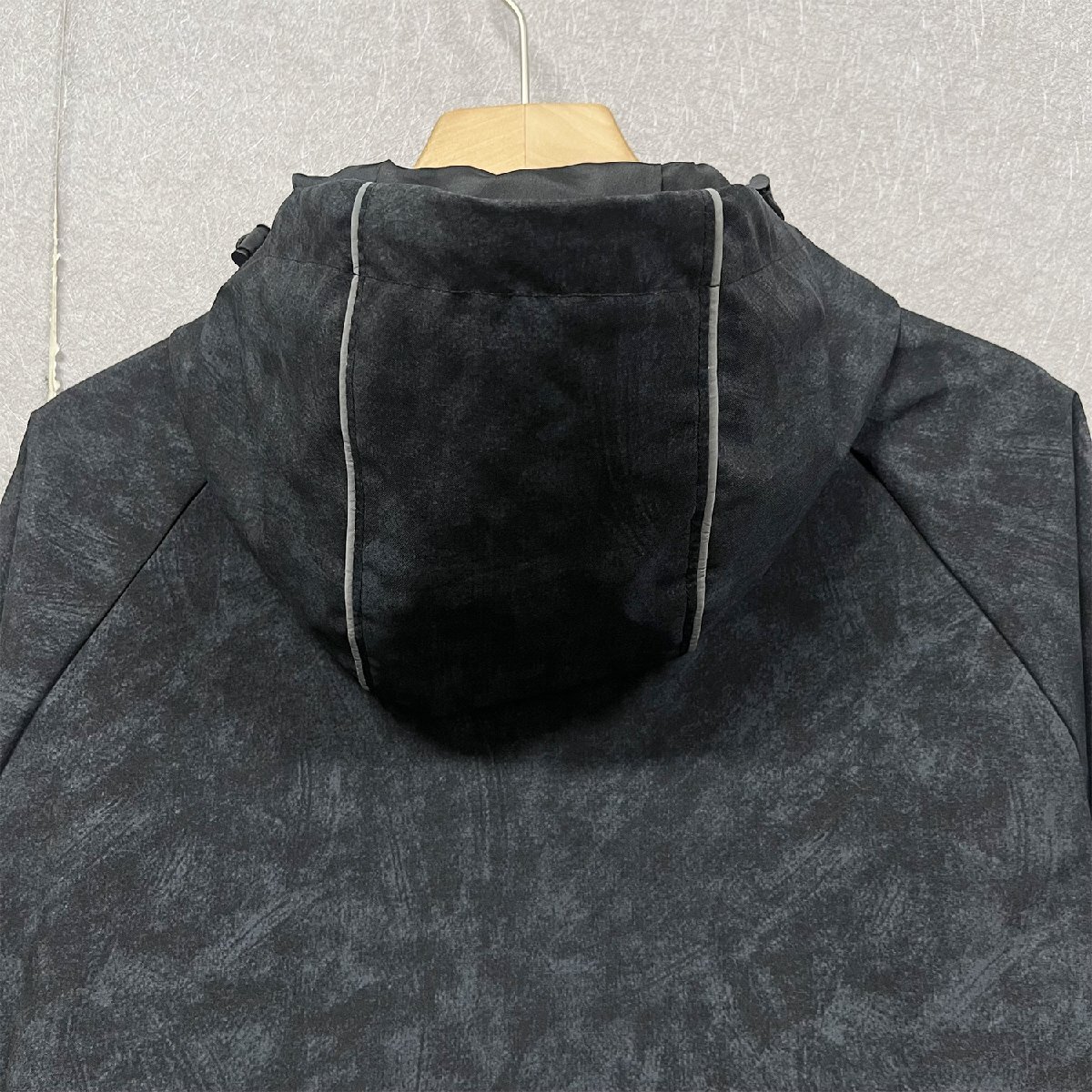 タイダイ染めが施されており、個性を引き立てながらも、派手すぎず落ち着いた印象に仕上がっています。反射線が前後に入っており、夜間や暗い場所での視認性を高め、安全性にも配慮。ファスナーで首まで引上げ可能で、外部の冷たい空気を遮断することができます、しっかりと首まわりを保護されます。