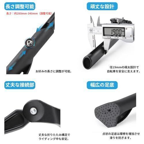 カラー:ブラック 材質:アルミニウム合金 重量:約330g 長さ:約280mm-340mm(自由に調整可能) 参考タイヤサイズ:20-26インチ 専用のボルト、六角レンチセット! ご購入前の注意点: 必ずお持ちの自転車サイズをご確認してからご購入してください。 電動アシスト自転車、Eバイク、ファットバイク、自転車 専用スタンド
