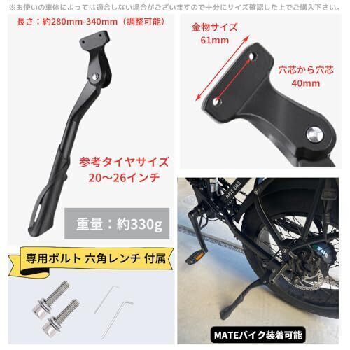 MATE Eバイク スタンド キックスタンド 電動アシスト自転車 ファットバイク 自転車 専用 簡単DIY カスタム パーツ 伸縮