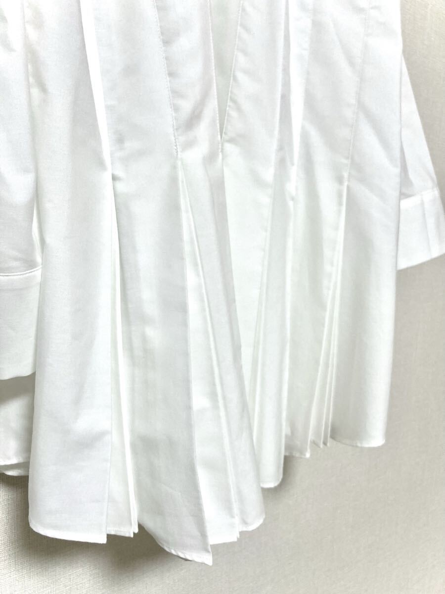 全体にプリーツをデザインとして取り入れたアクティブな印象のあるシャツです。