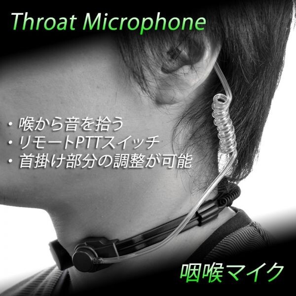 | 咽喉マイク(のどマイク) ・喉から音を拾うので、周りの騒音(風切り音など)が激しい場所でも使用できます。 例:バイクツーリング、レーシングカート、パラグライダー、サバイバルゲームに最適 ・マジックテープ付きリモートPTT(送信)スイッチ採用 ステアリングやハンドルなどに固定することができます。 ・首掛け部分の調整が可能 首周りが太い方、細い方にも使えます。長時間使用でも楽チン! ・左右の耳、どちらでも使用可能 ※こちらの商品は純正品ではありません。 |