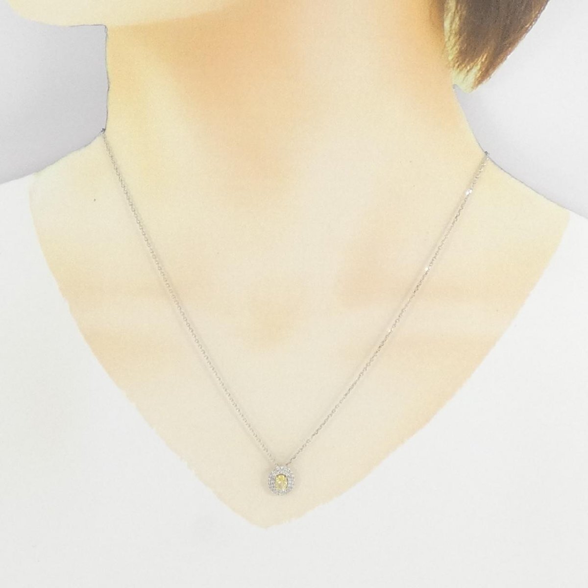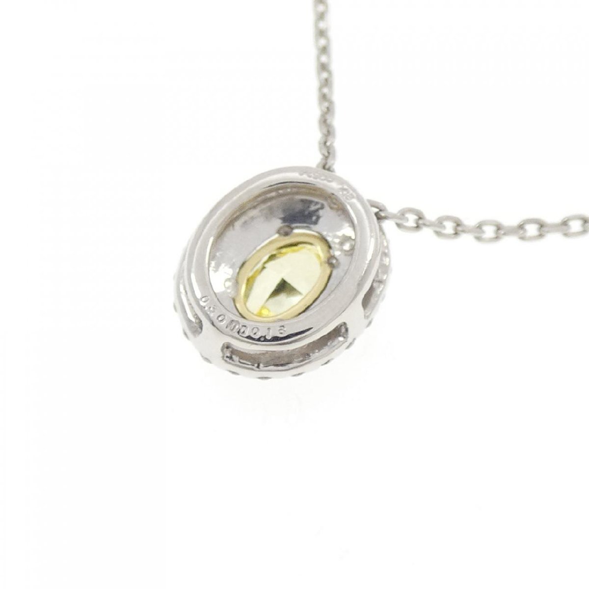 イエローダイヤモンドがあしらわれたネックレス。クリアに煌めくダイヤモンドが周囲を取り巻き、優雅な胸元を演出してくれます。