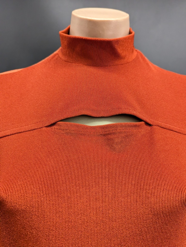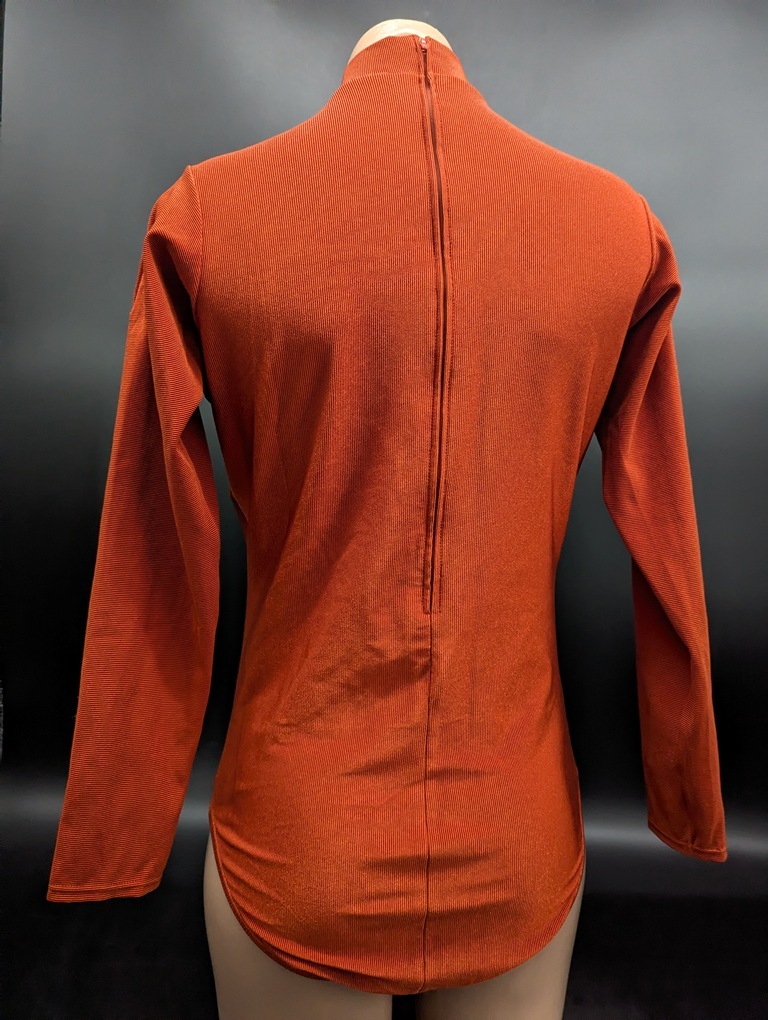 4227C 送料185円♪ 良品 TAKA DANCE FASION 社交ダンス 光沢 ブラウン系 リブストライプ 背ジップ 長袖 ハイカット レオタード L