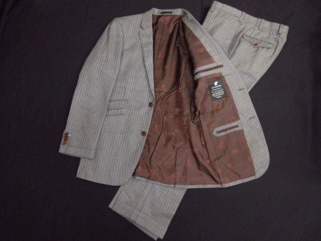 t8636 美品 ラブレス メンズ スーツ ジャケット パンツ 三陽商会 日本製 グレー ピンストライプ サイズ46 LOVELESS