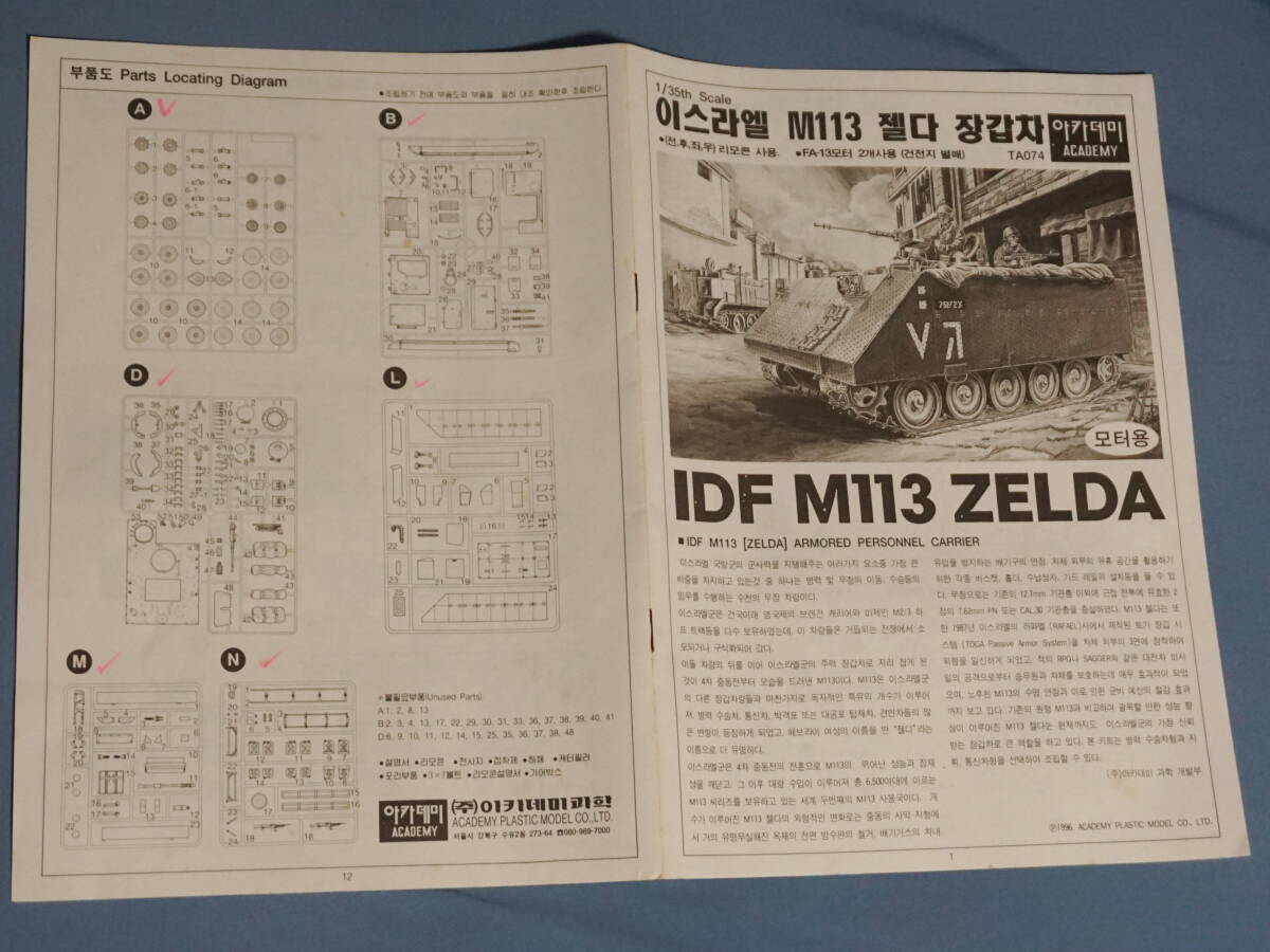 ジャンク品 1/35 アカデミー(TA074) IDF M113 装甲兵員輸送車 ゼルダプラモデル イスラエル 外箱ナシ 内袋未開封品