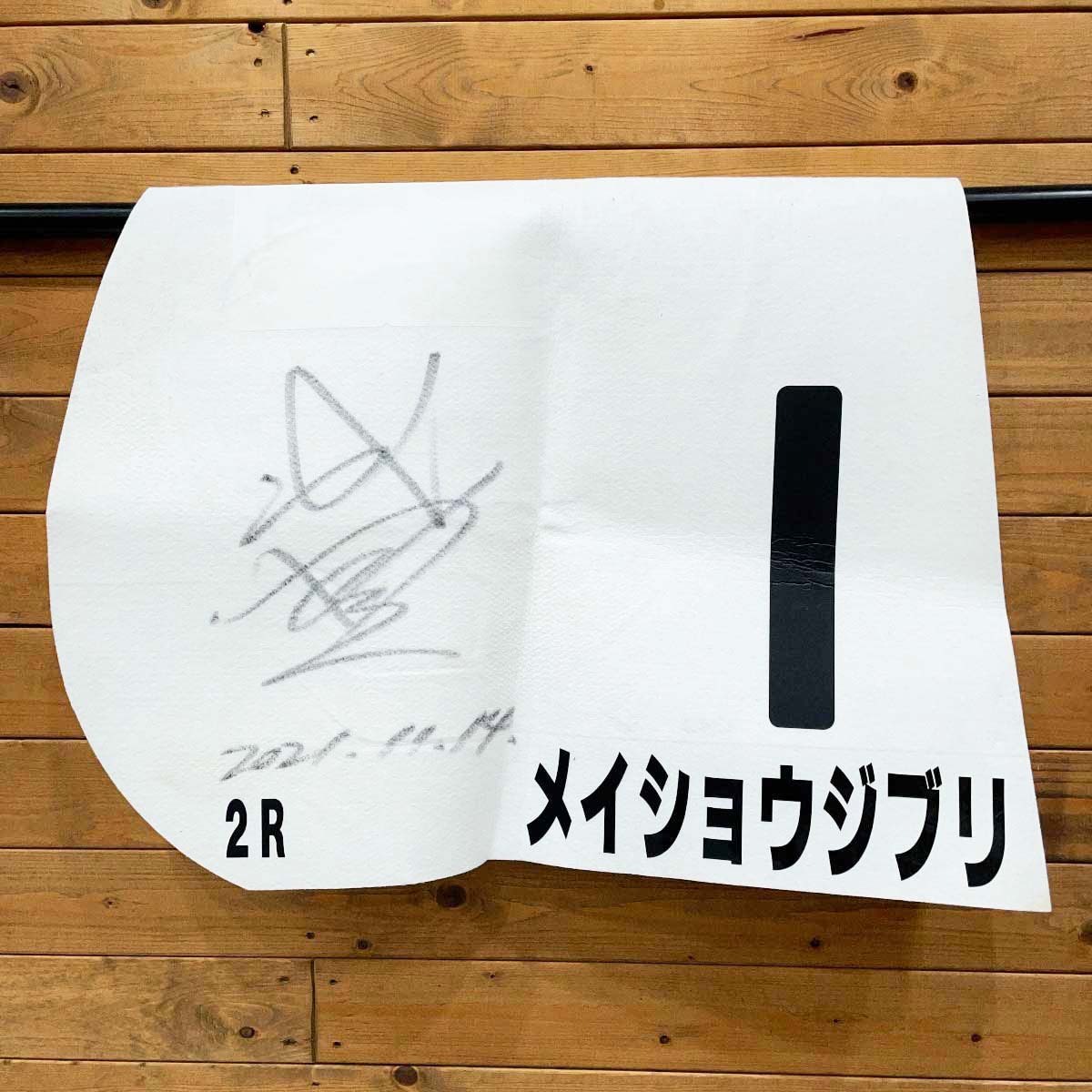 ※商品は画像にあるものがすべてとなります。 【仕様】 タイプ:メイショウジブリ 2歳未勝利 ゼッケン 武豊 直筆サイン入り 【状態】 実使用品のため使用感があり、ある程度の汚れや傷みがみられます。 |