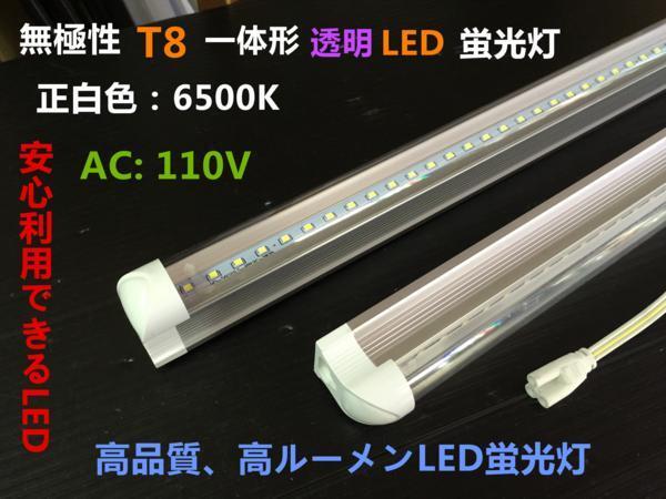 最新形高輝度 T8一体型 透明 LED蛍光灯 正白色 110V 20W形 60cm | |||