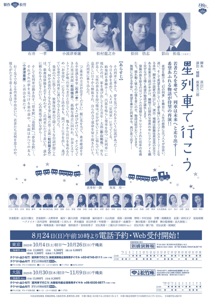 ・チケット受渡し時に詳細を確認の上、現金でのお支払いをお願い致します。 | ・公演日当日、劇場前にてチケットをお渡し致します。 | |||