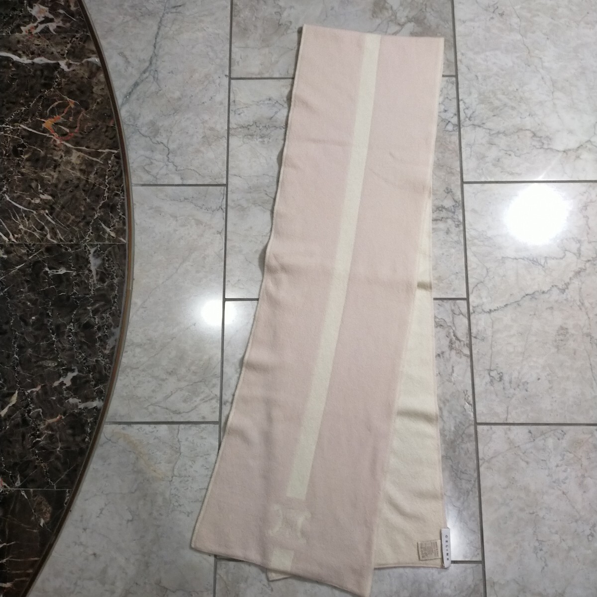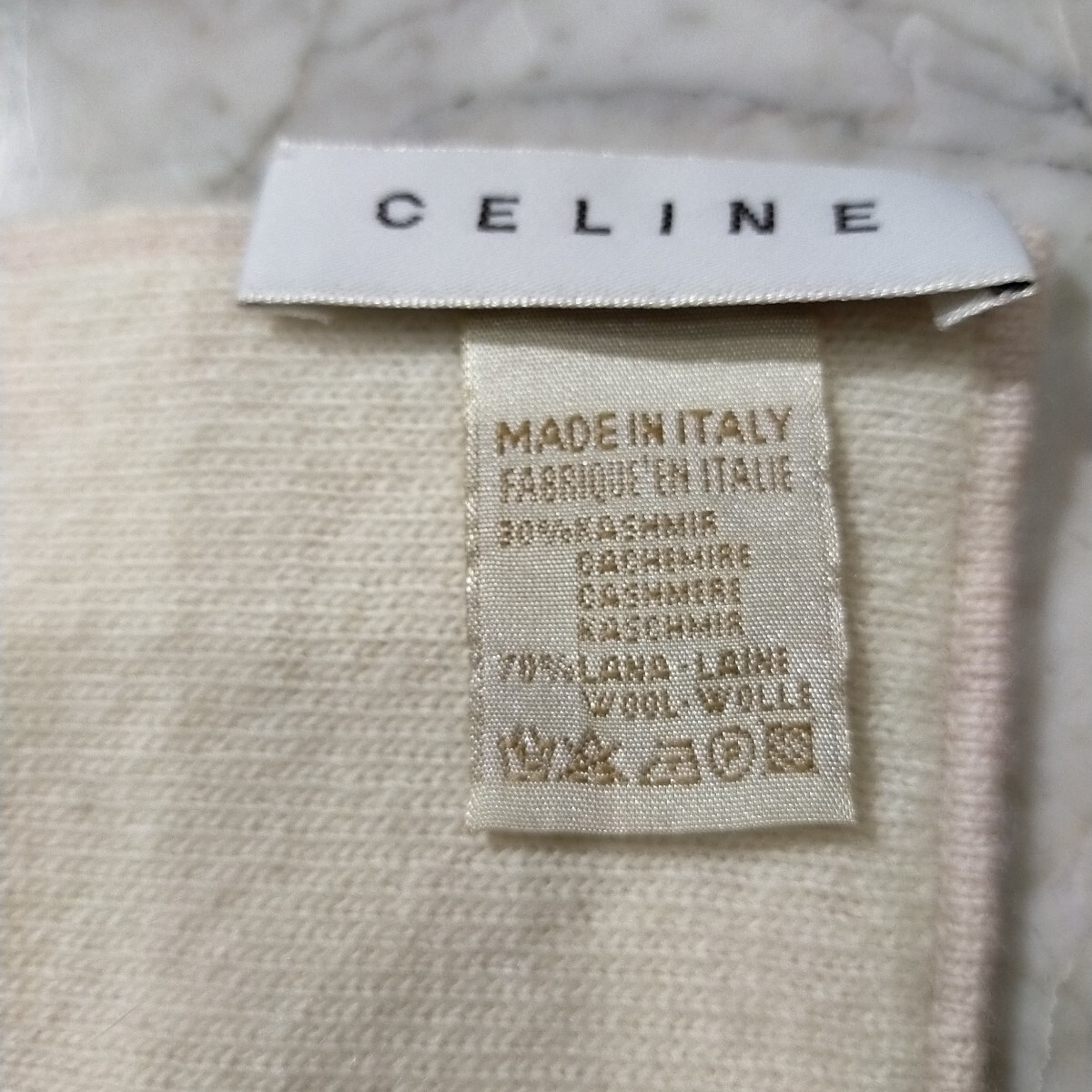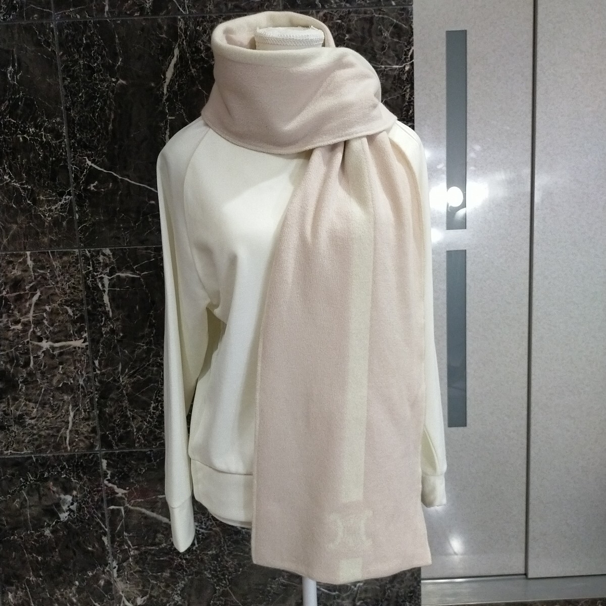都内「CELINE」ブティックにて定価で購入いたしました 《ベビーピンクxオフホワイトの優しい配色》が大変可愛らしい「CELINE」ロングマフラーorストールです。 生地は《カシミヤ配合 》なのでキメが細かくて柔らかく高級感があります。 《ベビーピンクカラーベースにオフホワイトのラインとトリオンフ織柄》が目立ちすぎず上品で、でもしっかりセリーヌ感を主張しております。 購入直後は何回か着用しております。 クリーニングに出しクローゼットに保管しておりました。 素材上 若干の毛羽立ち感、又保管ジワ癖などございますが全体的には綺麗で状態の良いお品だと思います。 ご理解の上写真をご覧になって判断し 入札をお願いします。 神経質な方は入札をご遠慮ください。 ノークレーム・ノーリターンでお願いします。 サイズは全長184cm 幅26cm ライン幅3cm トリオンフ5.5cm ×6cmです。