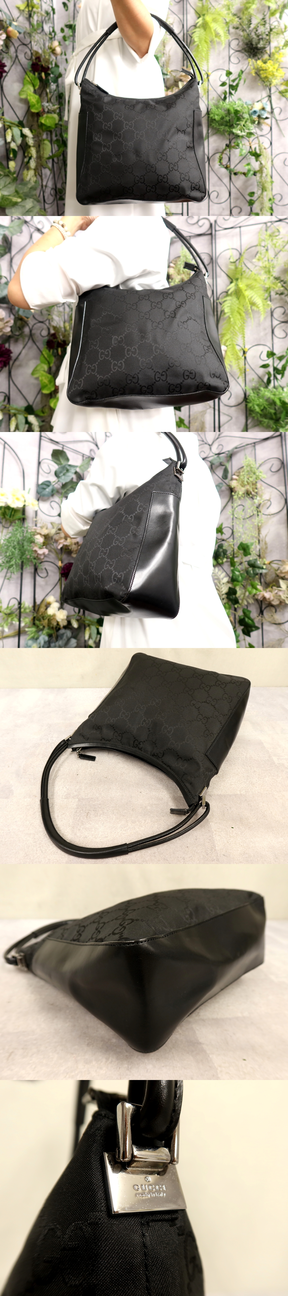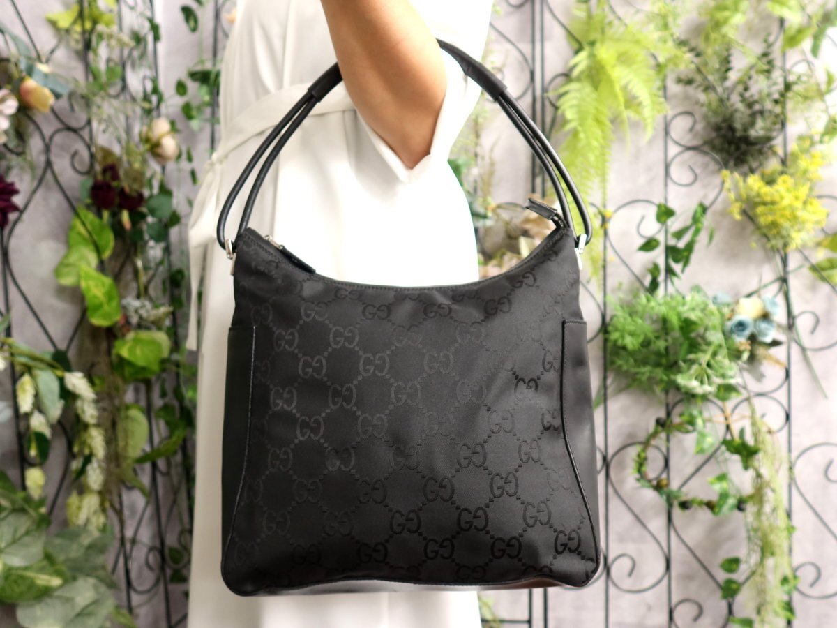 ●超美品●GUCCI グッチ●GGナイロン カーフ レザー 本革●ハンド ショルダー バッグ●黒●シルバー金具●肩掛け●イタリア製●Js60607
