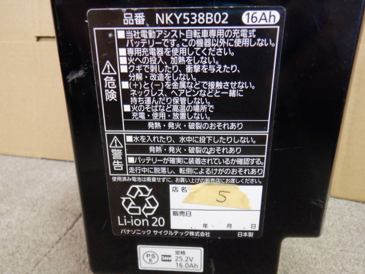 商品説明 | パナソニック リチウムバッテリー16Ah 長押し5 NKY538B02です。 リチウムイオンバッテリー バッテリー自己診断 ボタン長押し 10秒 長押し5点灯です。 充分使える、バッテリーだと思います。 実容量(元気さ・劣化具合)を調べる機能のみ 1.バッテリーの残量表示ボタンを 約10秒間 押し続けます。 2.5つのバッテリーランプの点灯の仕方でバッテリーの実容量が分かります。 ランプ5つ点灯 バッテリー実容量 100%~81% 現時点で上記内容ですが、自己診断表示は時間等で変化する場合があります。 商品到着時、上記と異なる状態でも保証はございませんので参考程度にお考え下さい。 容量 16Ah バッテリーです。 充電器に乗せて満充電、確認済みです。 中古品なので日焼け、キズ、汚れ、スレあります。 上記内容説明を確認、理解した方、入札お願い致します。 画像確認、質問等お願い致します。 |