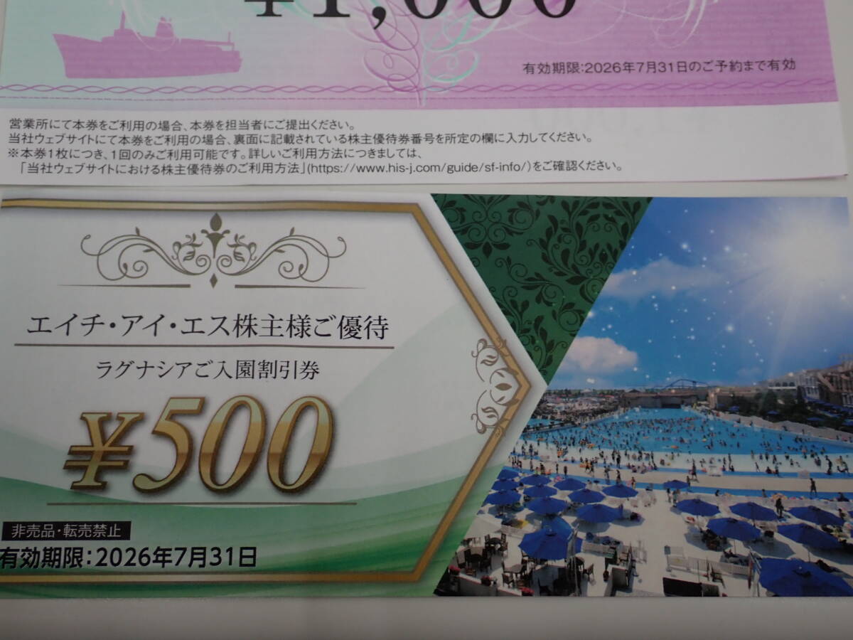 8086★HIS 株主優待券1,000円2枚 ラグナシアご入園割引券500円1枚 26年7月31日まで |