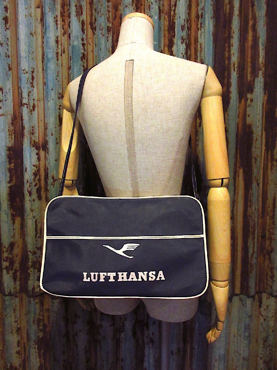 ビンテージ-70’s●LUFTHANSAショルダーバッグ紺●250927j3-bag-shd古着1970sルフトハンザドイツ航空
