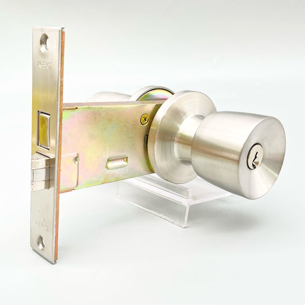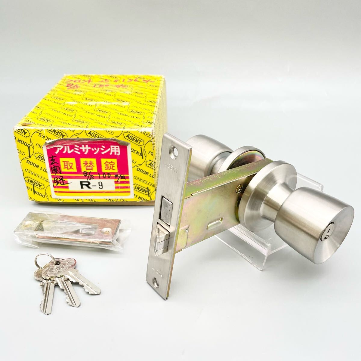 [新品 未使用] エージェント 玄関 取替錠 ドアノブ R-9 BS100mm シルバー AGENT ハンドル 建具 握玉 シリンダー 鍵 大黒製作所 金物屋 在庫