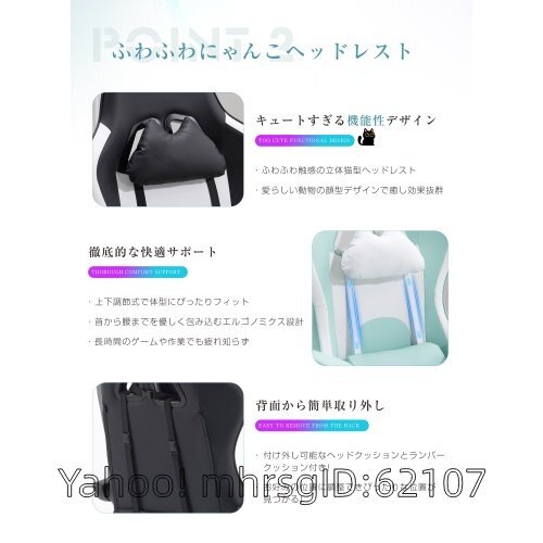 • 「萌え」と「機能性」が融合した新次元ゲーミングチェア。新感覚デザイン!動物耳アクセントで唯一無二の可愛さどんな部屋にも映えるポップなカラー