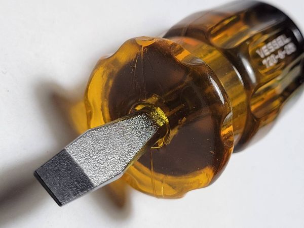 #VESSEL #ベッセル #クリスタラインドライバー #スタビータイプ #No.6200 #No.720 #クリスタライン柄 #マイナスタイプ #クロームバナジューム鋼 #全身焼入 #マグネット入り #短い軸とグリップ #家具 #家電 #自動車の整備 #工具 #DIY用品