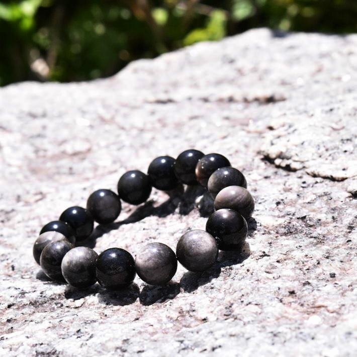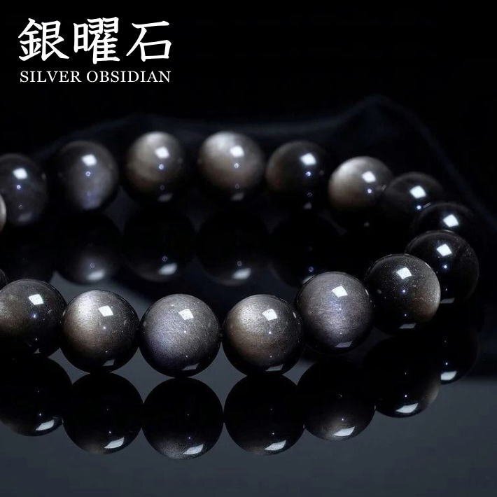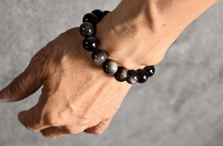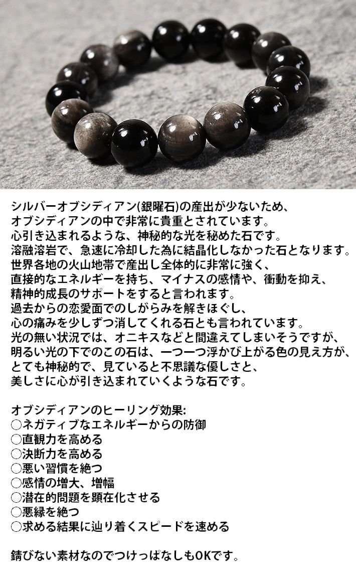 銀曜石 黒耀石 パワーストーン ブレスレット バングル メンズ レディース アクセサリー 7987397 シルバーブラック 新品 1円 スタート