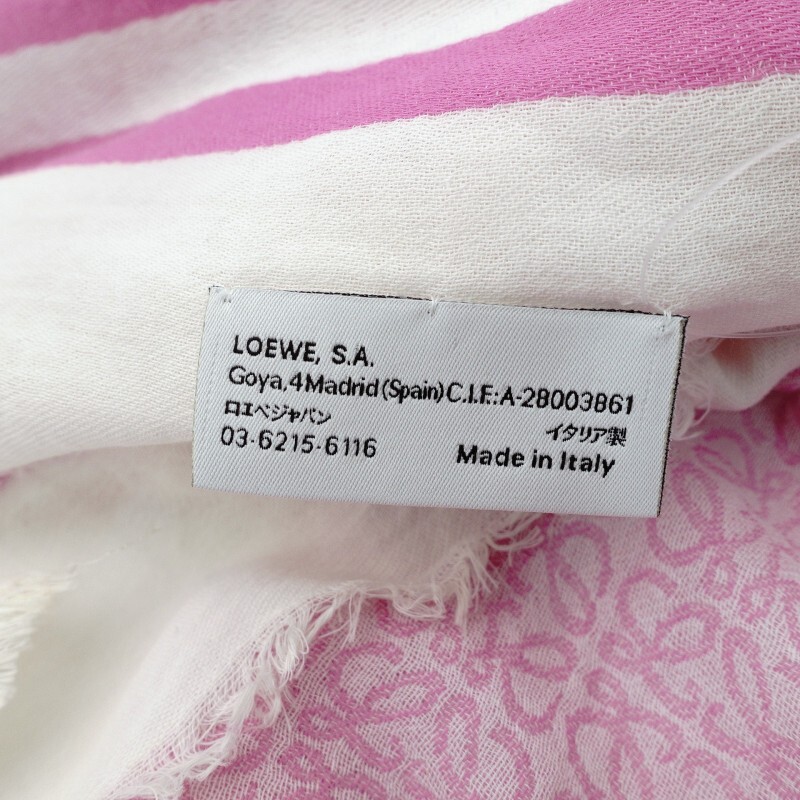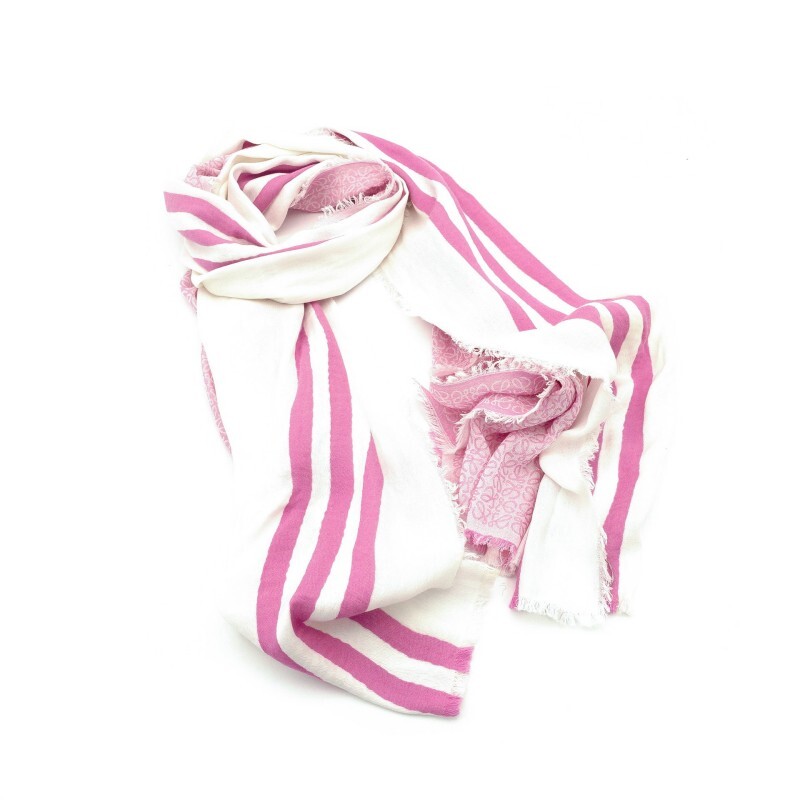 | 商品名 | ロエベ LOEWE ストール アナグラム ピンク×ホワイト 大判 コットン100% スカーフ 7-9-466 | |||||||||||||||||||||