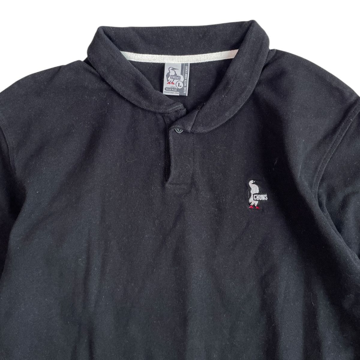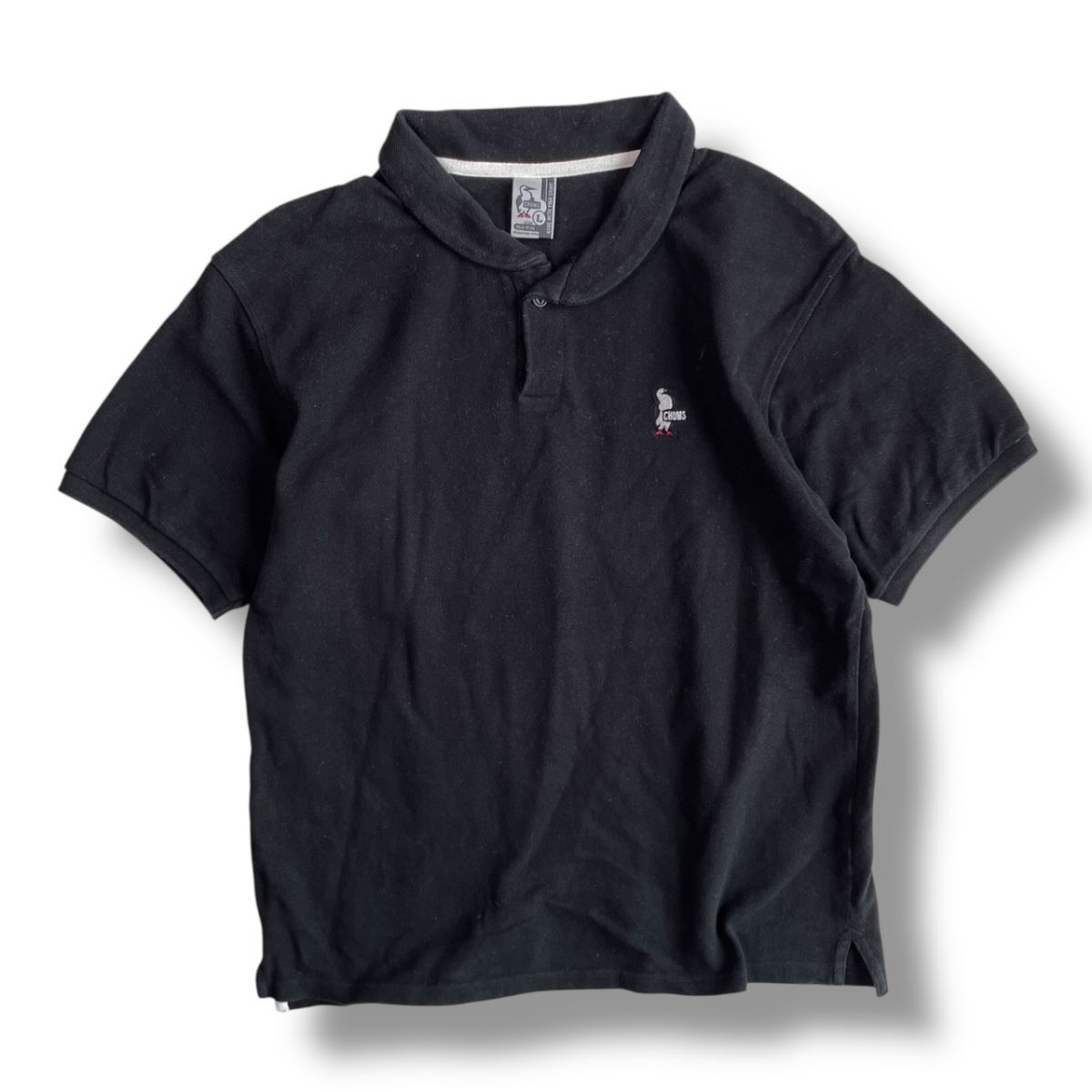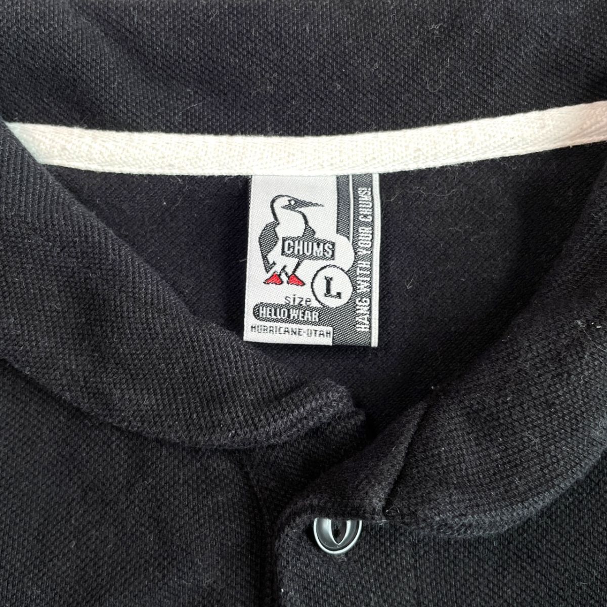 国内正規★ CHUMS チャムス 半袖 丸襟 刺ロゴ ポロシャツ Lサイズ 黒 アウトドア キャンプ 登山 クライミング POLO