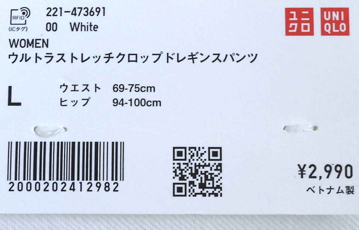 ユニクロ UNIQLO ウルトラストレッチクロップドレギンスパンツ Lサイズ WOMEN ホワイト【新品未使用】