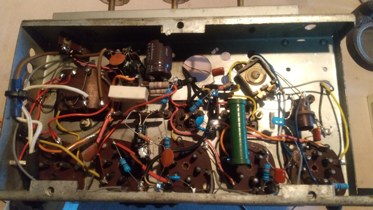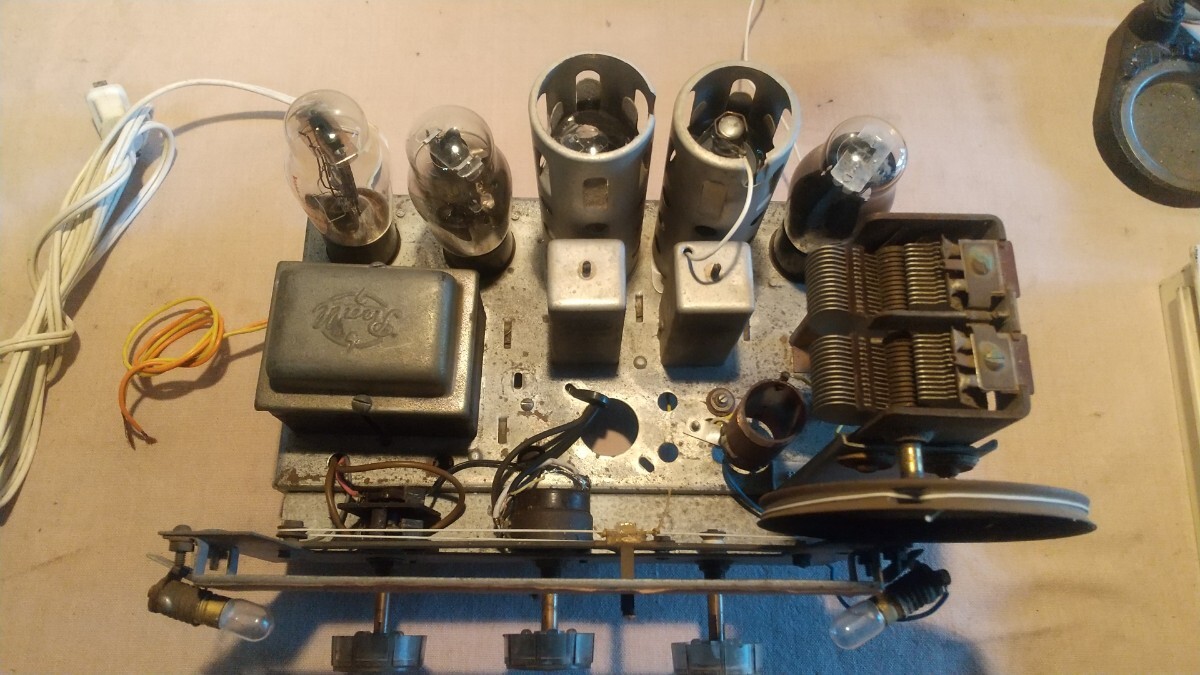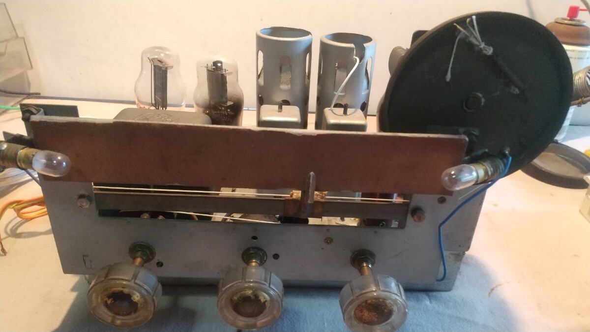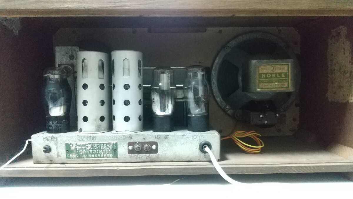 整備内容 スピーカー代用品に交換 すべてのコンデンサ、抵抗の交換配線の交換 ダイヤル糸の交換 キャビネットは軽くペーパ--をかけてオイルステンで着色しています。裏板はありませんが期間中に制作して付属します。PUは切り替えスイッチが片切りのため簡易接続していますので、強電界では検波もれになりますのでアンテナを外す等してください。ご不明な事項は質問で宜しくお願いいたします。