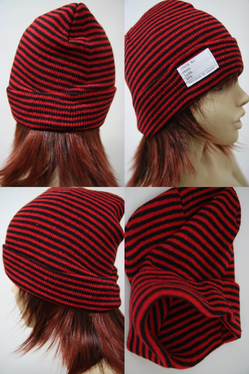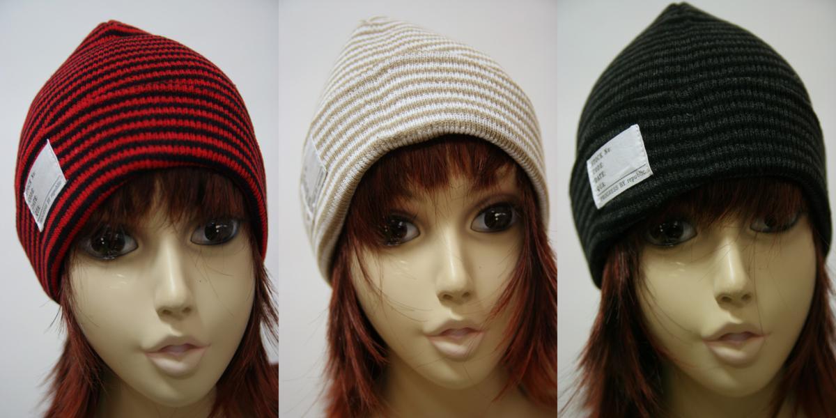 送料無料◆3色組◆通年タイプ◆フリーサイズ◆男女兼用◆綿混素材◆コットン75%配合◆ボーダー柄ニット帽(レッド&ベージュ&ブラック)