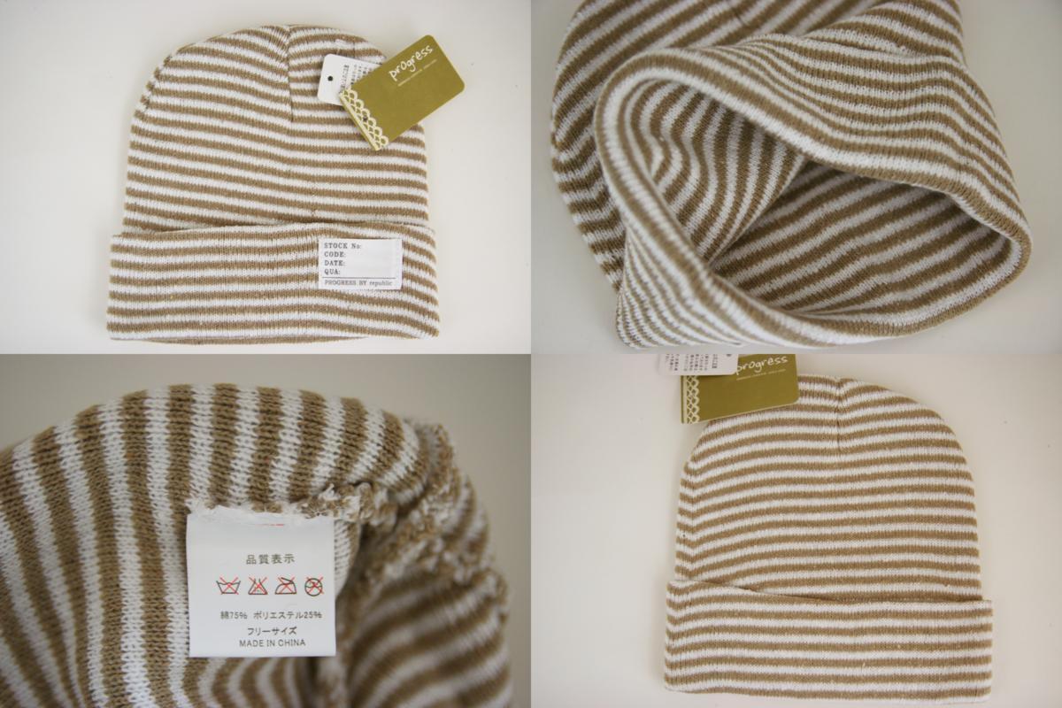 主に百貨店や専門店で取扱っている【progress】の高級感溢れるボーダー柄の男女兼用ニット帽です。なお、一点一点の商品を大切に袋入りの状態にて保管しておりますので、多少の折りシワにつきましてはご了承下さいませ。