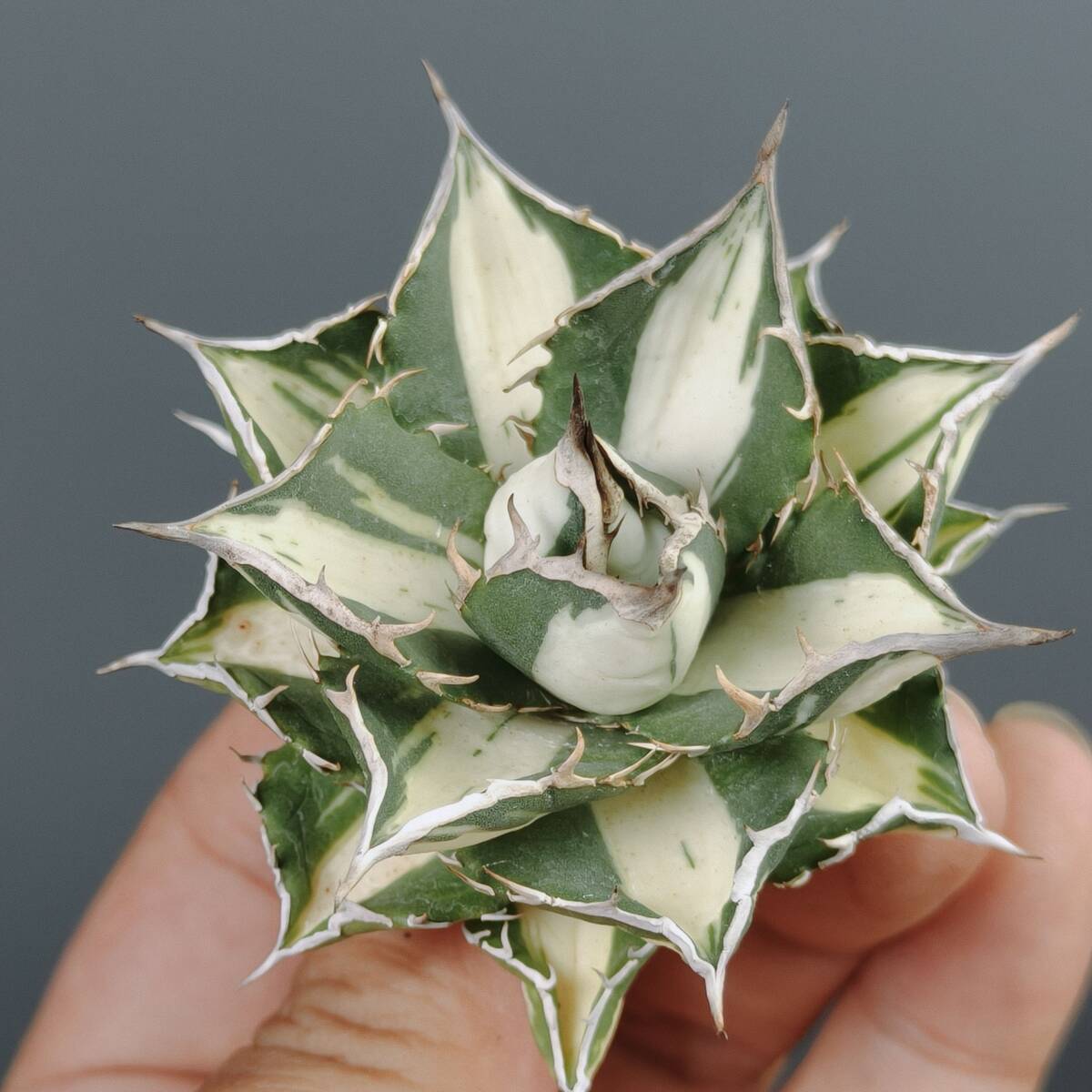 【龍園觀】No.S7 'SSS級' アガベ チタノタ '太陽神錦' 極白中斑 ☆希少☆ ☆短広葉☆ 極上株