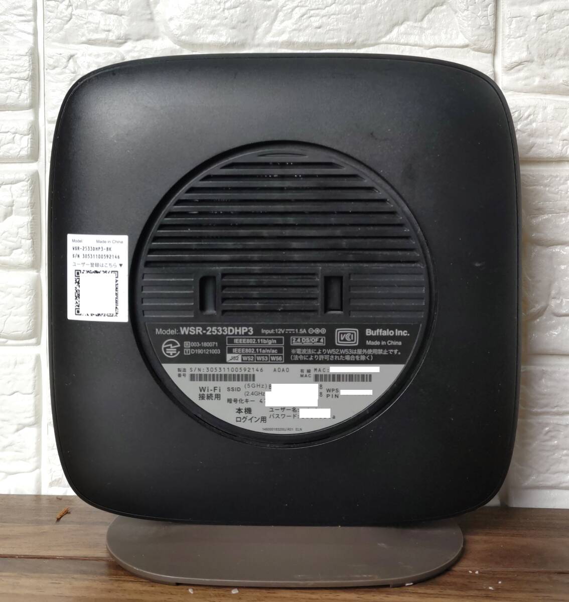BUFFALO バッファロー 無線LAN 親機 WSR-2533DHP3 WiFi ルーター 中古品 動作確認済