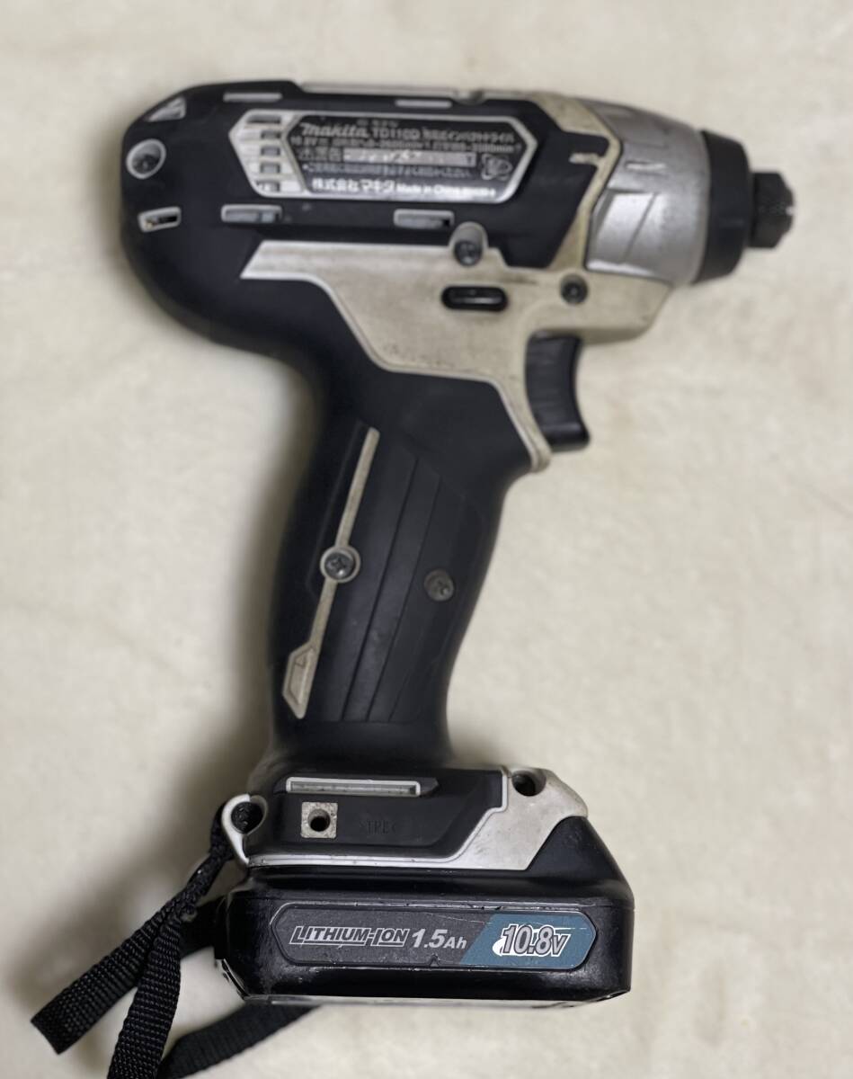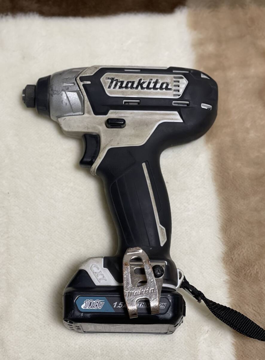 マキタmakitaTD110D 10.8V充電式インパクトドライバ バッテリー付売ります。画像のもの全てで、充電器はありません。当方、当オークションで同型の未使用品を最近購入しましたが、新品と比べても、当品は締め付けや回転速度も変わらないので、まだまだイケると思います。念のため、ノークレーム、ジャンク扱いでお願いします。送料無料です。