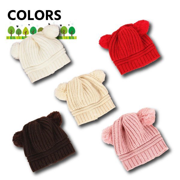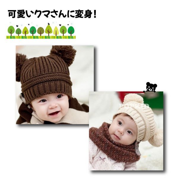 クマ耳ニット帽 赤ちゃん用帽子 | ||||