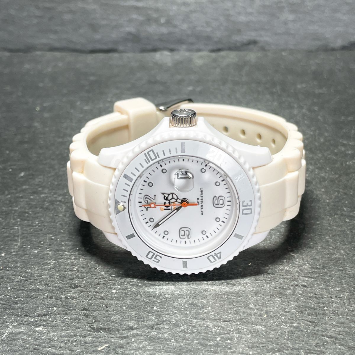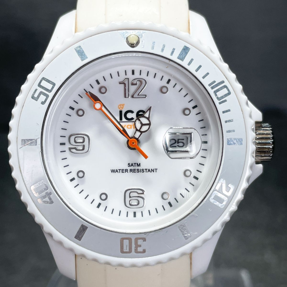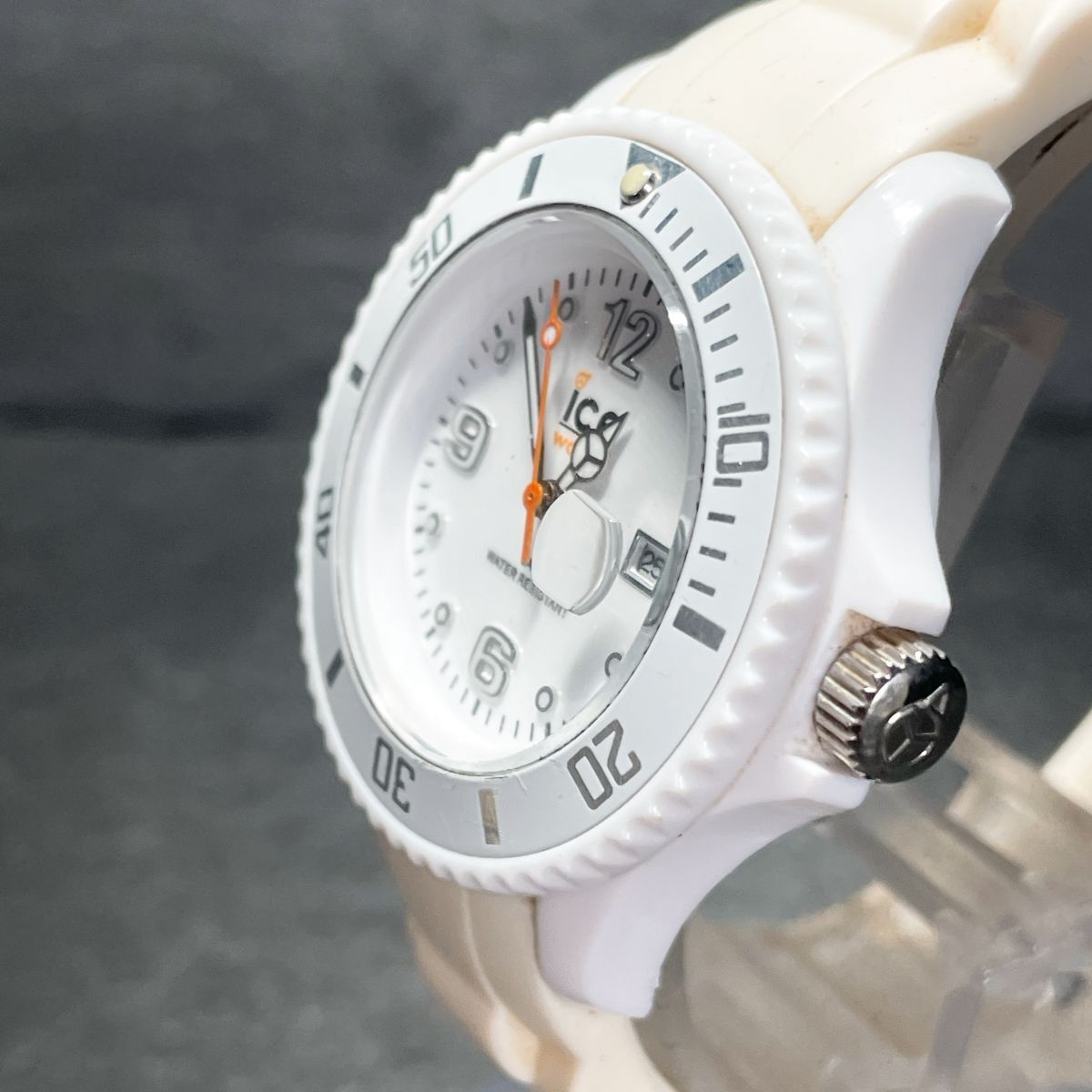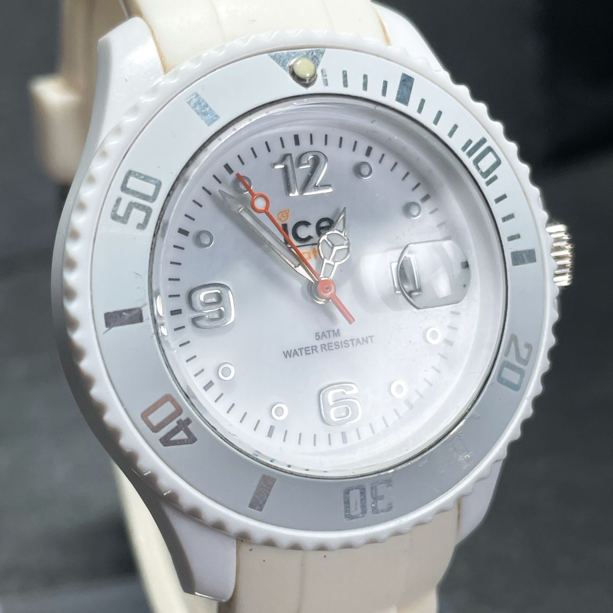 美品 ice-watch アイスウォッチ 腕時計 アナログ クオーツ 3針 カレンダー ホワイト文字盤 ラバーバンド 新品電池交換済み 動作確認済み