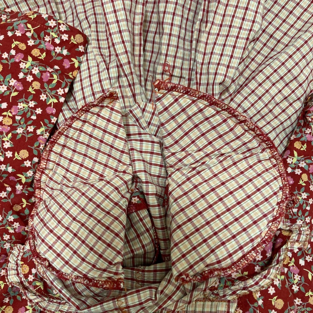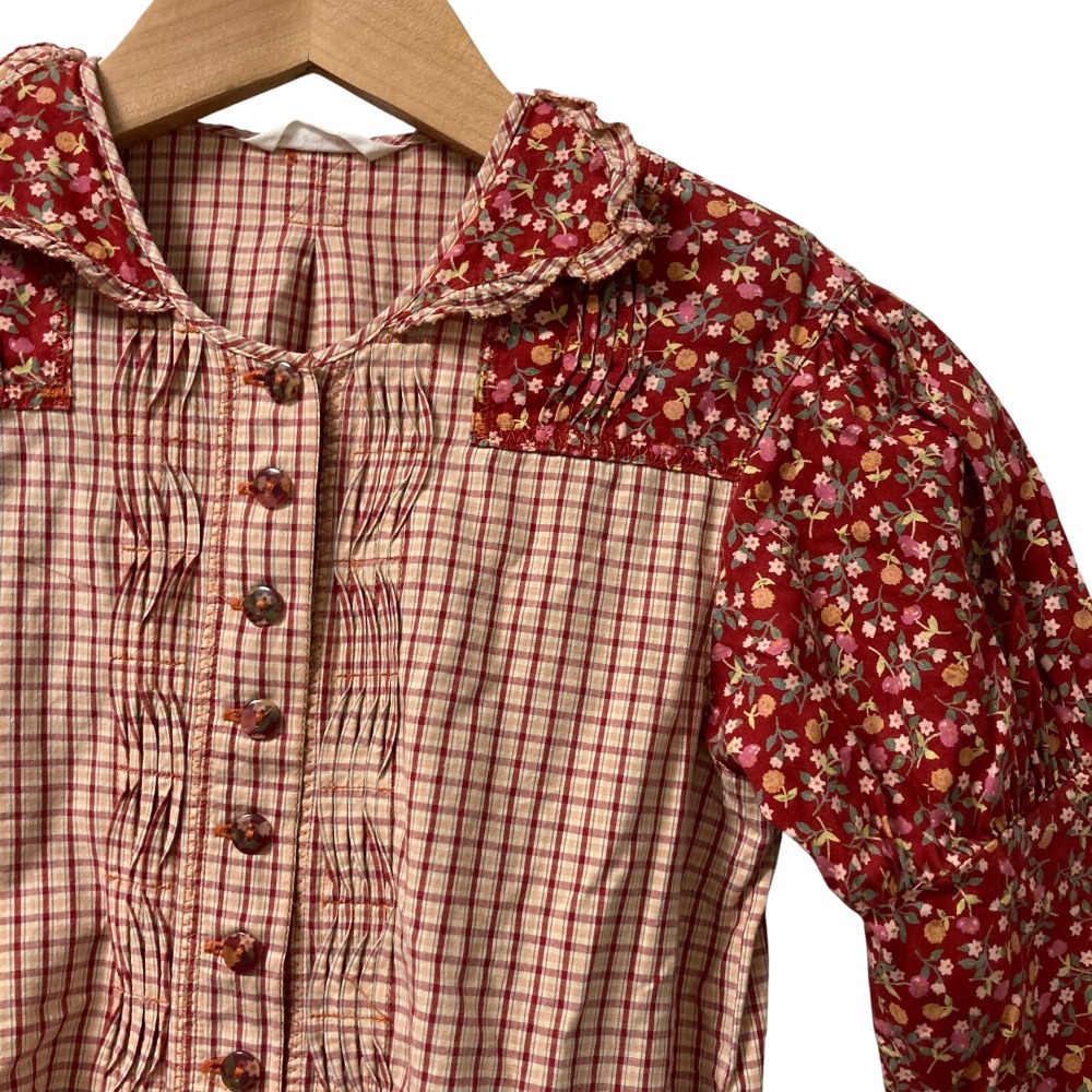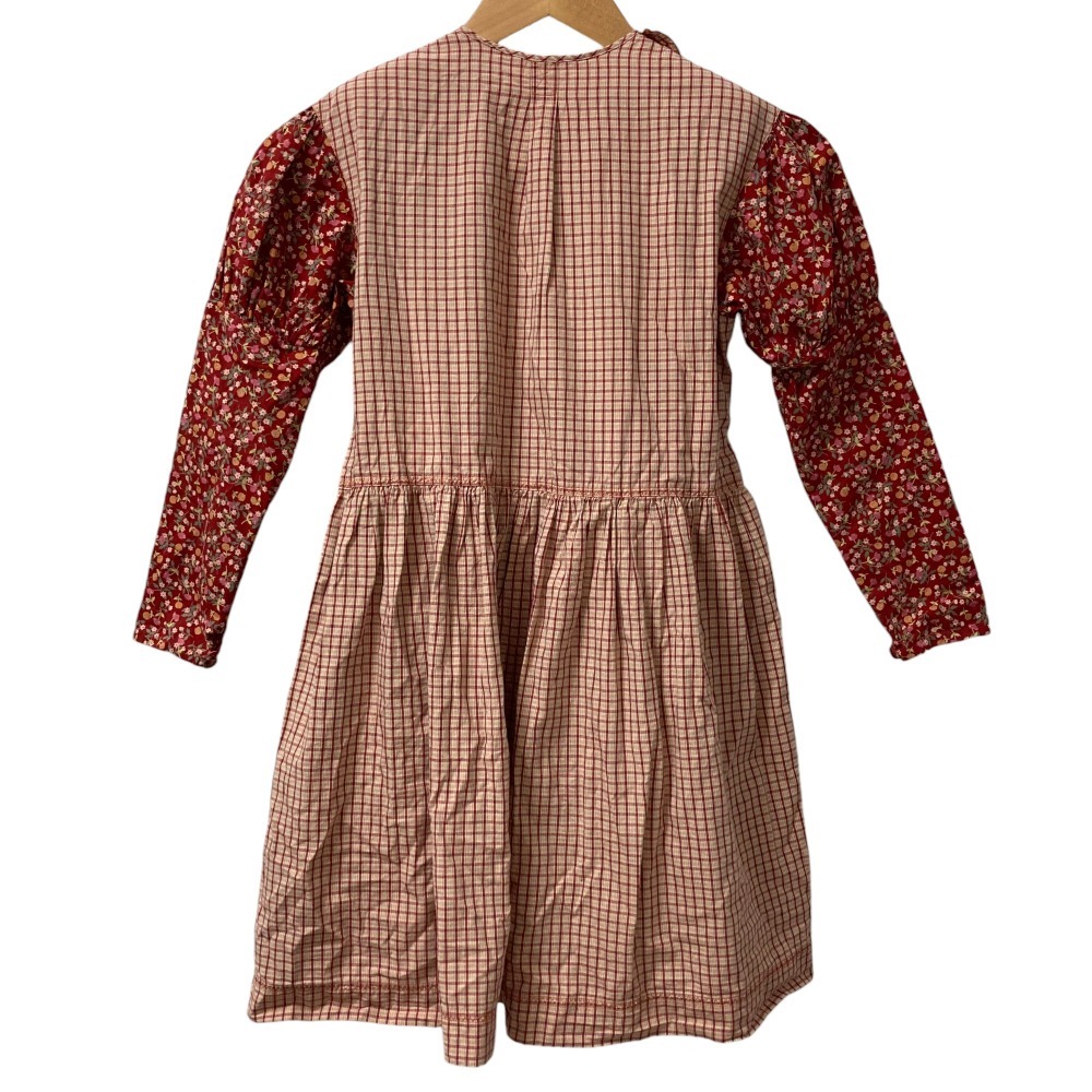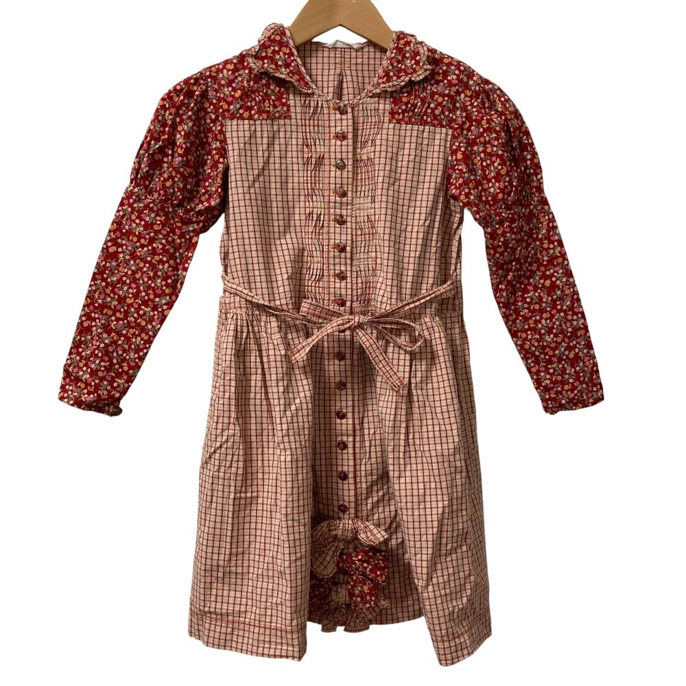 美品 BABY PINK HOUSE ベビーピンクハウス チェック フラワー リボン 長袖 シャツワンピース キッズ サイズ120cm レッド