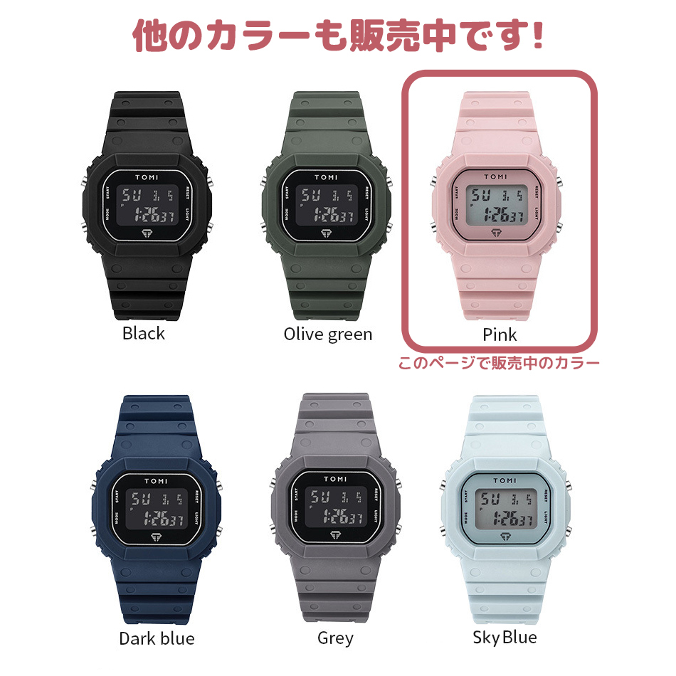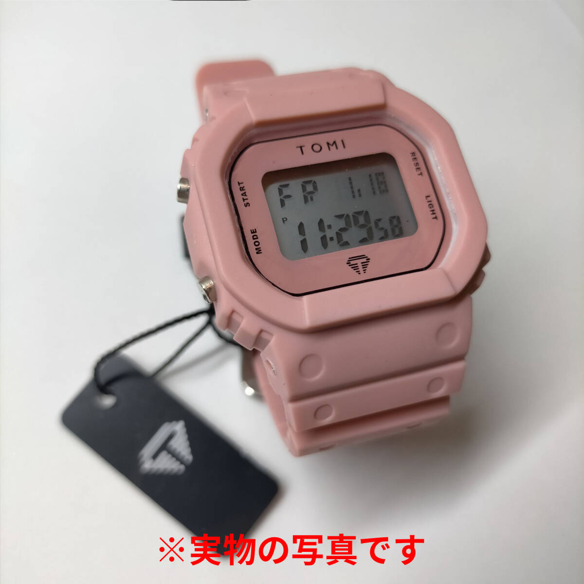 30m防水軽量シンプルデザイン スポーツウォッチ デジタル腕時計 メンズレディース ジョギングくすみカラーピンク (G-shockではありません)