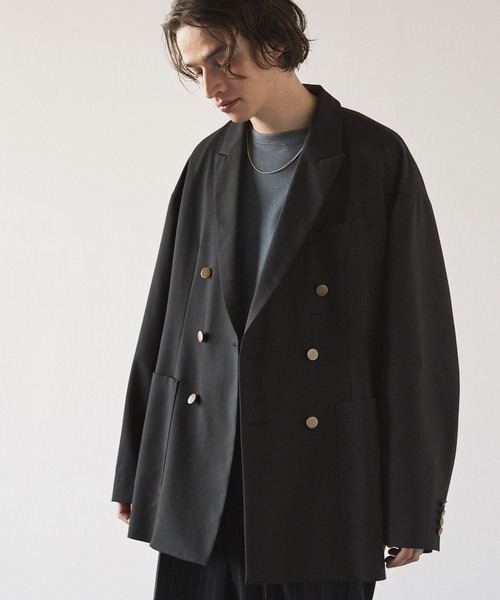 参考商品名:TR綾ストレッチ オーバーサイズピークドラペル金ボタンダブルジャケット/ブレザー EMMA CLOTHES