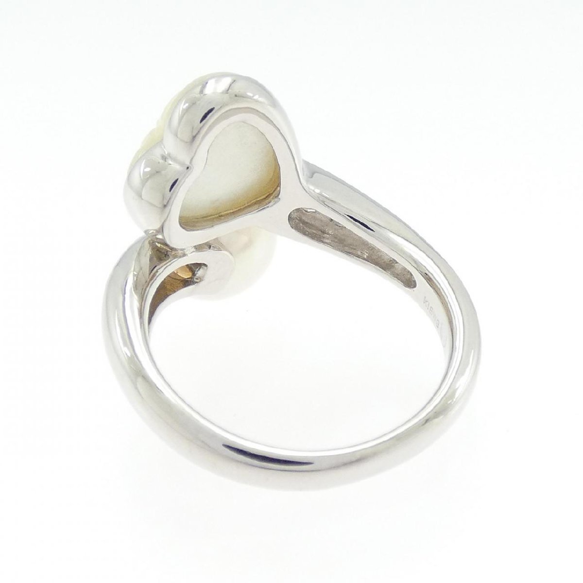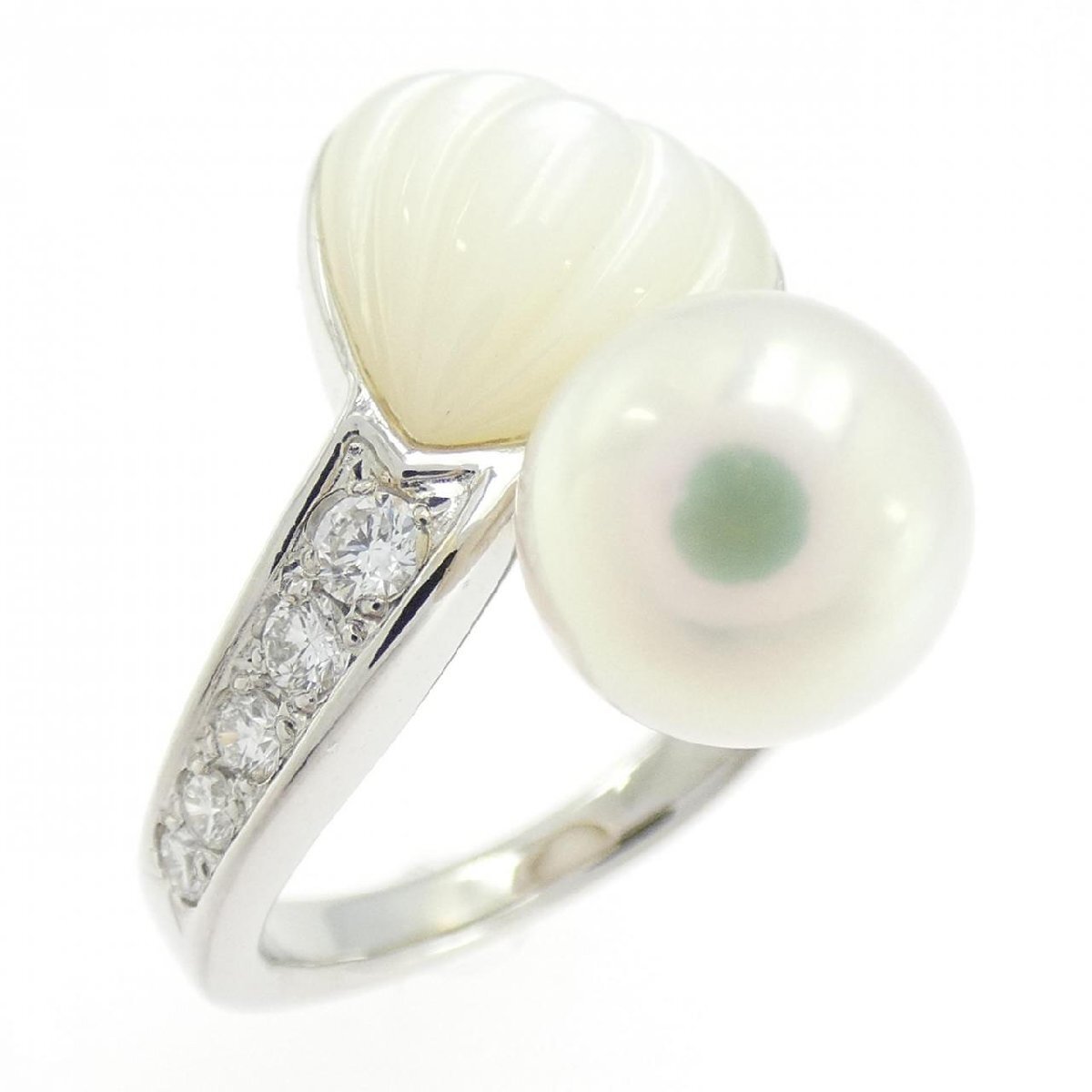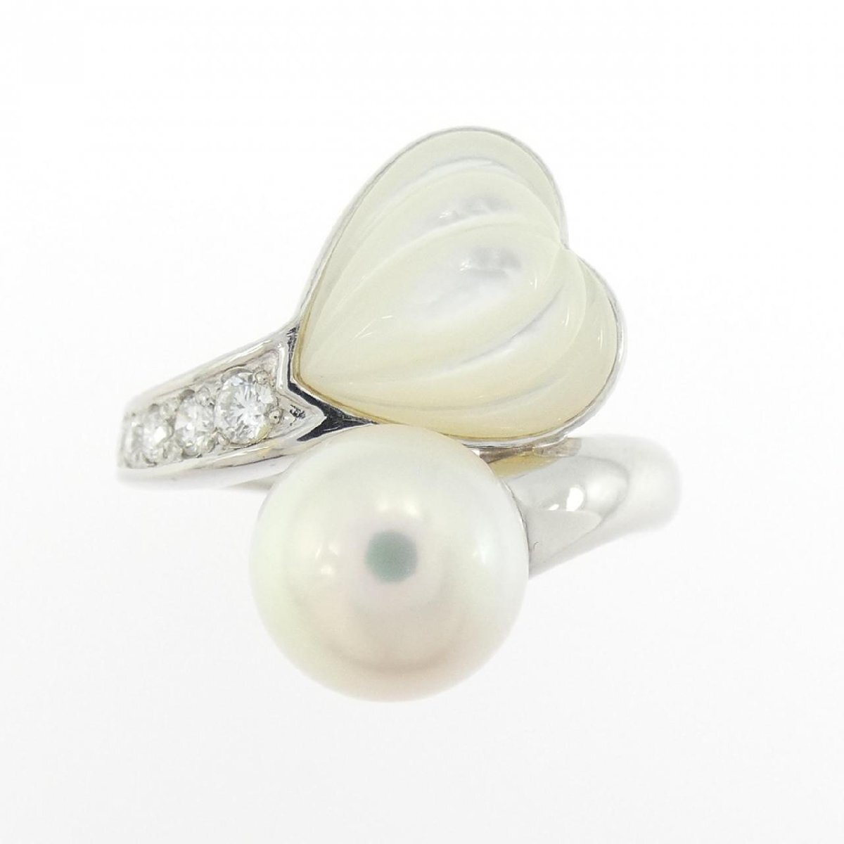 淡い光を放つアコヤパールとマザーオブパールがあしらわれたリング。クリアに煌めくダイヤモンドと共に上品な指元を演出します。