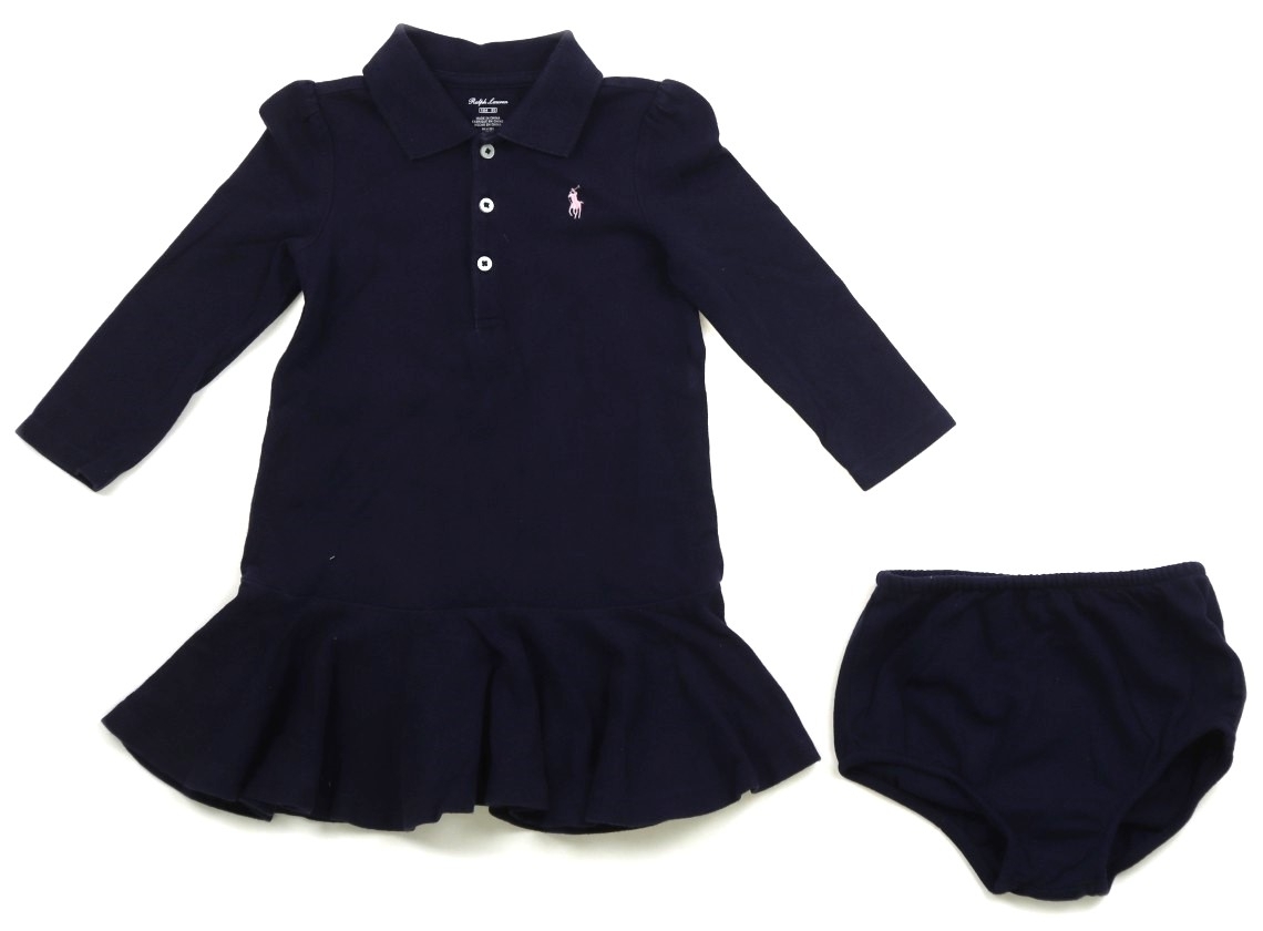 実際のサイズ表記は18m/85です。鹿の子カットソー生地でポロ衿です。ブルマとセットです。若干色褪せ感がありますが、まだ活躍してくれそうです。