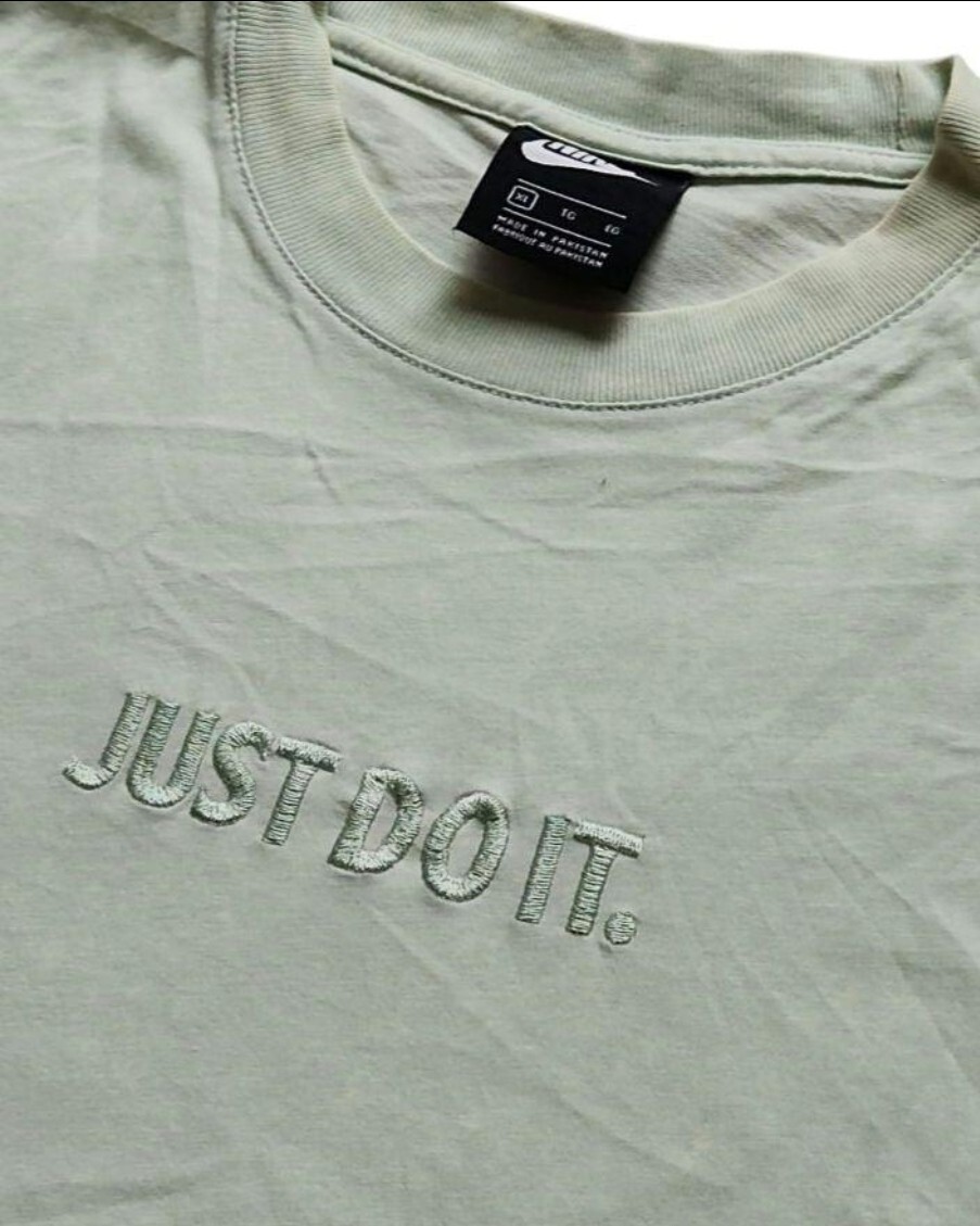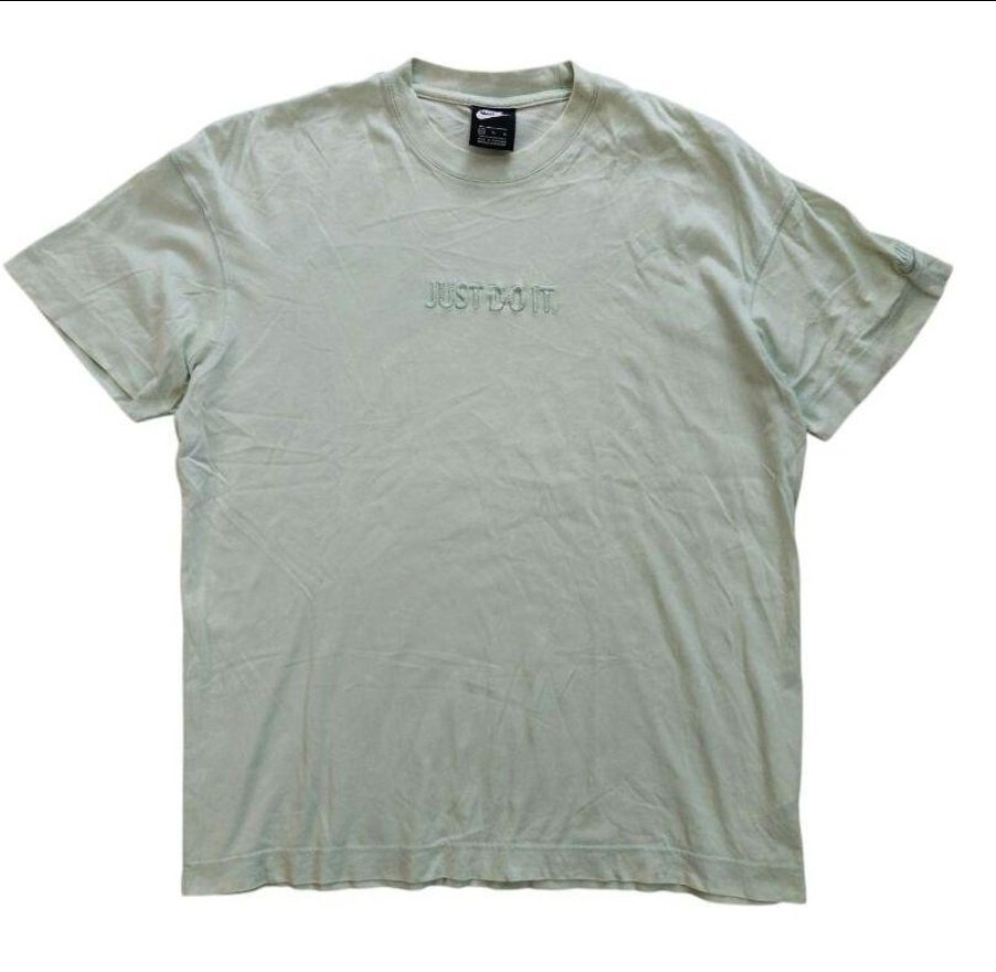 NIKE ナイキ Tシャツ 半袖 JUST DO IT 刺繍ロゴ グリーン 緑 ワンポイント シンプル カレッジ風 スポーツ ストリート 古着 ヴィンテージ XL メンズ レディース ユニセックス