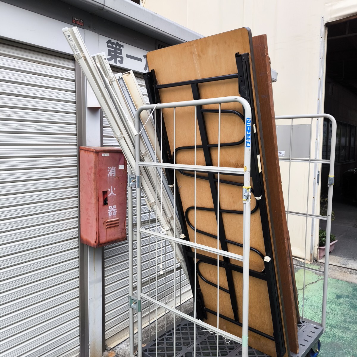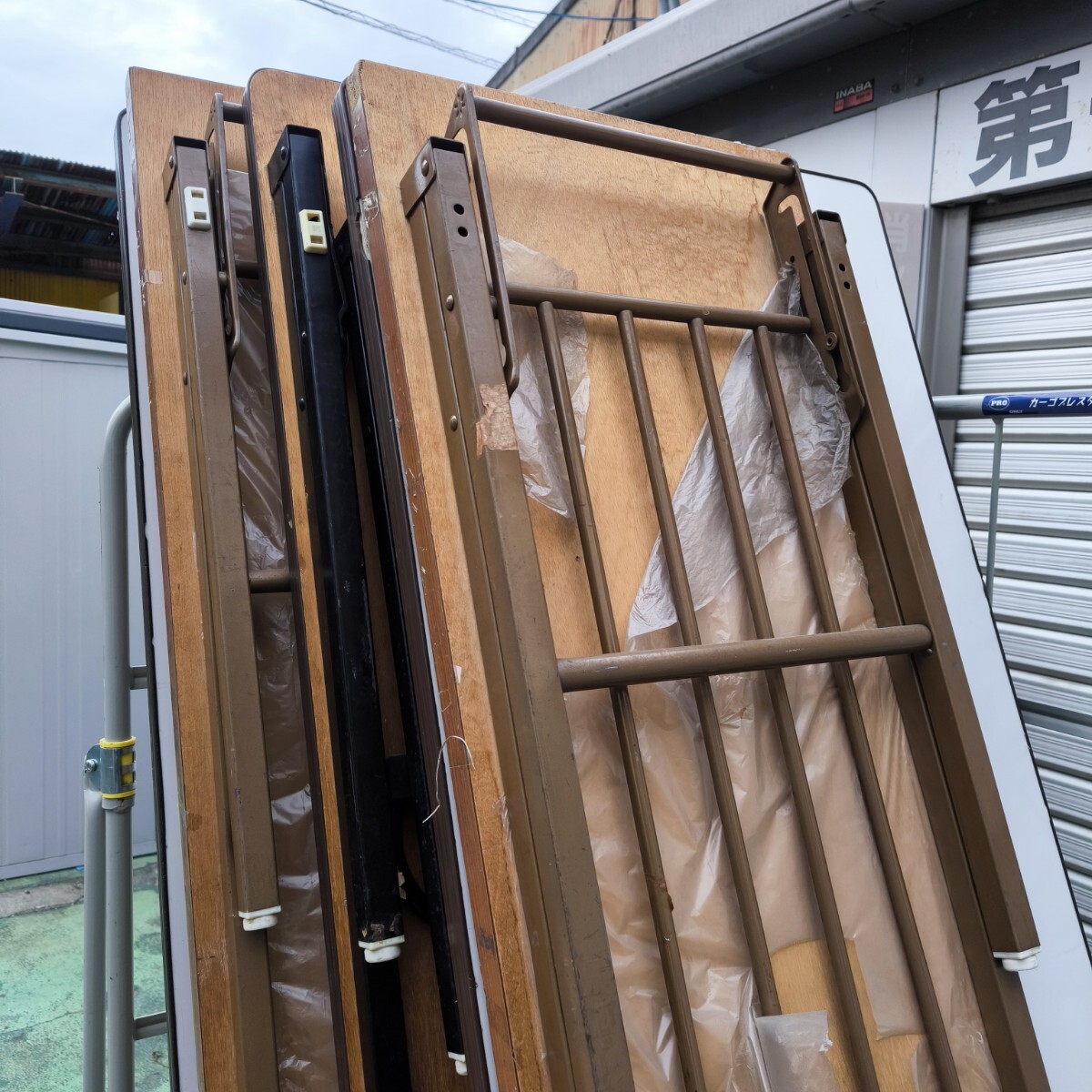 写真1枚目手前の机、目安サイズ 180×45×高さ69.5cm/写真9枚目 176×60×高さ66cm(広げずに計測していますので正確ではないです) 他サイズ色々まとめ売りです