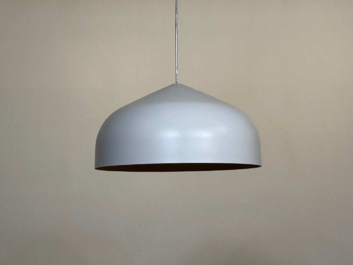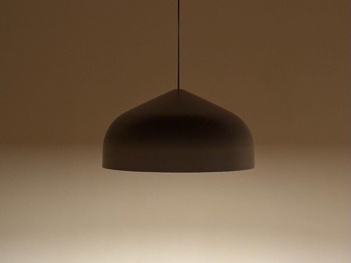 アルミニウム材を旋盤加工によって成形した鐘状の直線的でシンプルなシルエットに、パステルトーンのカラーリングと細やかなシボ打ちの質感で上品さを加えた名作ペンダントライト。Lumen Center Italia より。