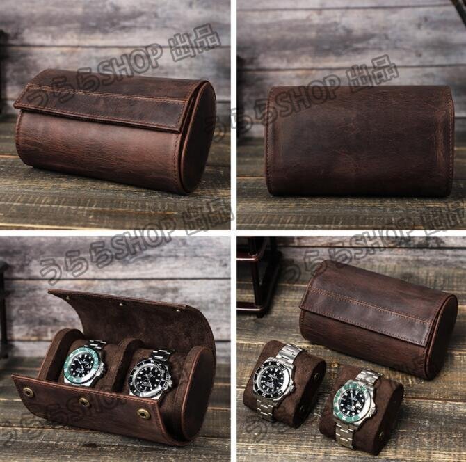 ヴィンテージ腕時計ケース 2本収納 旅行用携帯腕時計収納ケース 牛革ウォッチケース xhw0077