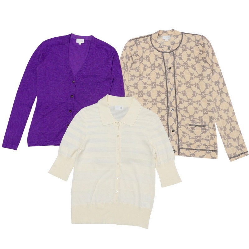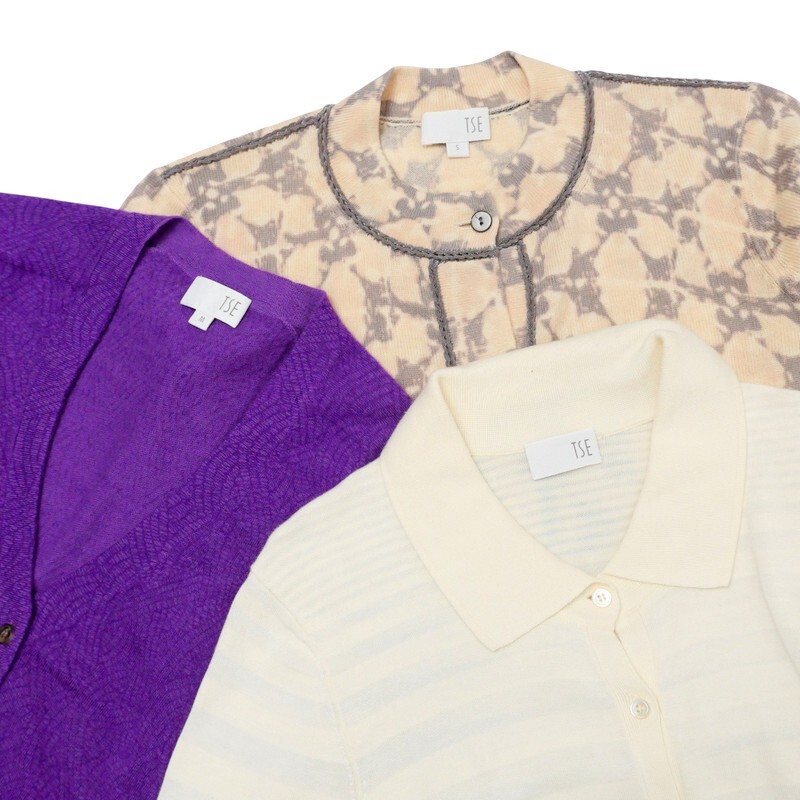 TJ4388#3点セット*セイ*TSE*Vネックカーディガン+クルーネックカーディガン+5分袖*カシミヤ*コットン*総柄*サイズS,M | |||