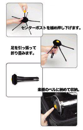 楽器のベルに納められるので、余分な収納スペースが要りません。 設置高さ:180mm ベース半径:170mm 重量 300 g 折畳サイズ: 180x70mm |