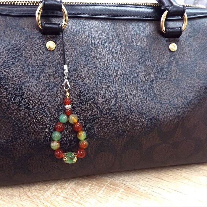 | 【STONE KITCHEN 天然石 パワーストーン】 ☆大人気の天然石を使用したお守りストラップ☆ カバンやスマホに付けて運をUP! バックチャームとしてもおススメです☆ 孔雀瑪瑙は見る人を魅了するほど個性的で 不思議な色のグラデーションはつい見とれてしまいます。 七宝の一つでもあり幸せの象徴で縁起が良く 長寿や健康をもたらすと言われ勇気や自信 心の安定へ導くとも言われております。 【サイズ】長さ:約5.5cm (ストラップ紐・カニカン部分は除く) 素材:孔雀瑪瑙 アゲート 約10mm・約8mm カーネリアン 約8mm・約6mm 1点 注意事項 ※金属部分は汗や汚れ等で変色する場合がございます。 気になる場合は金属磨きや布等で軽くふき取る事をおすすめします。 ※石の種類によっては、艶を引き出すことを目的として、ワックスや着色加工がされているものもあります。 ※表示のサイズは必ずしも最大値・最小値のサイズのものが入っているわけではございません。 ※天然石のため同じものでも色味・模様などが異なります。 ※照明の具合で実際とは色合いが異なる場合がございます。 また、天然素材特有のクラック・内包物を有する場合がございます。予めご了承下さい。 | |