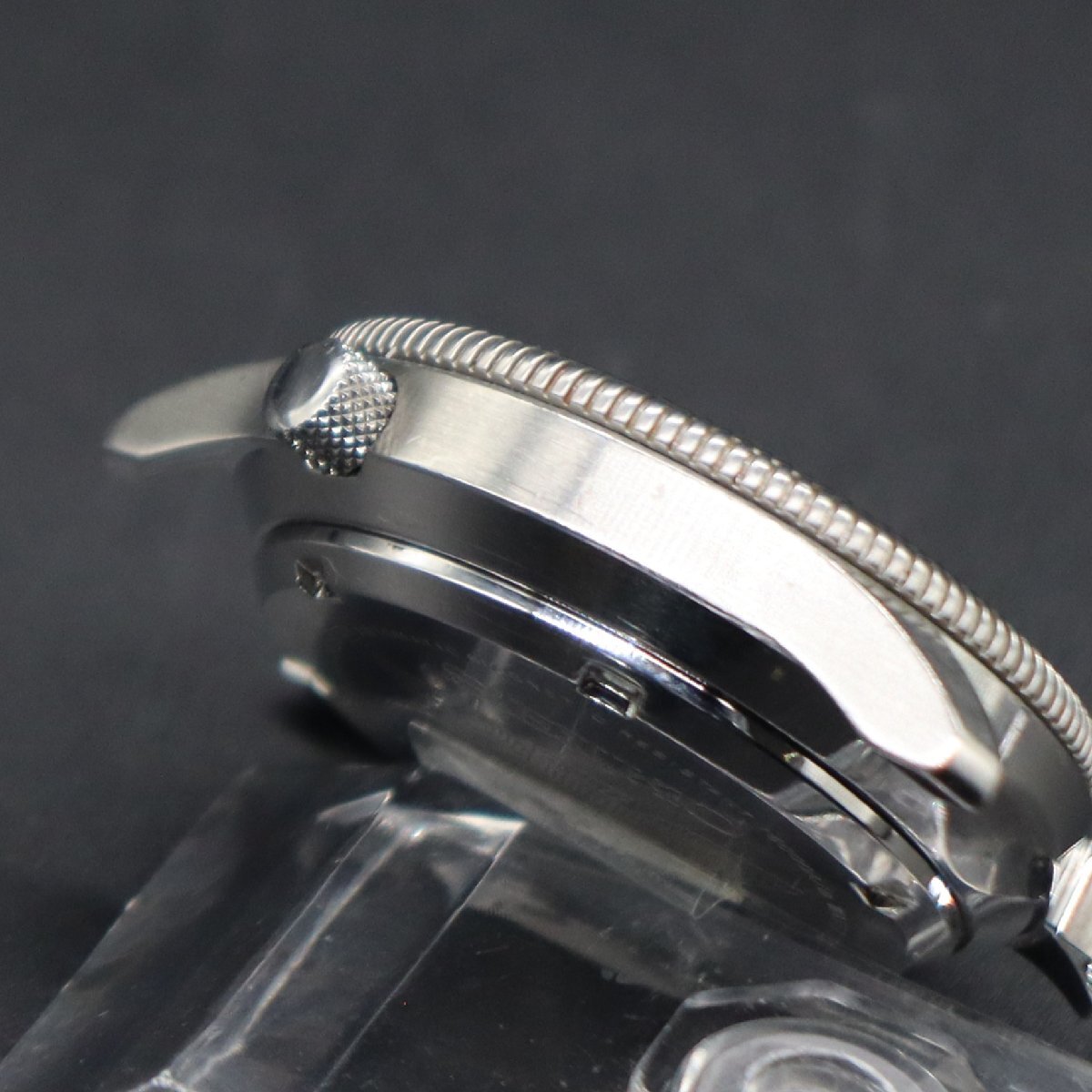 平置きで12時間動作確認済み、大幅な遅れなく稼働中です。 リューズを一段引きでデイデイトクイックチェンジOK、 二段引きで時刻調整が可能です。 ※カレンダー早送り機能は、商品同封の使用上の注意を必ず守り、 丁寧に、やさしく操作していただくようお願いいたします。 全体に使用に伴う小キズ・小打痕ございますが、 ケース左側面に印字のANAマーク、良好です。 風防に複数の線キズございますが、視認性は良好です。 文字盤や針・インデックス・植字ロゴは目視でキレイです。 夜光もキレイに光ります。 裏蓋の刻印、鮮明です。 純正バックル付属しております。 使用に伴うスレございますが、開閉良好です。 本体+尾錠の、現状でのお渡しです。 状態について、詳しくは画像にてご判断願います。 | |