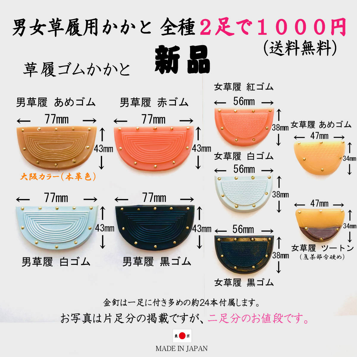 男草履かかと 新品 2足1000円 送料無料 日本製 雪駄塾 草履 リペア 補修 ゴムかかと 三日月 馬蹄 テクタ ベタガネ 雪駄 下駄 鼻緒 履物3