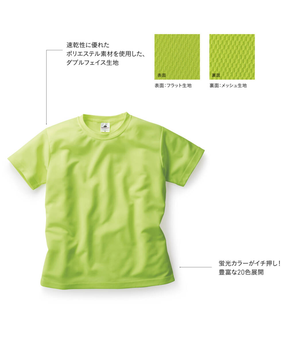 商品説明 | 暑い時季におすすめの汗を吸ってもすぐに乾かす速乾性に優れたポリエステル素材を使用した、吸汗速乾性のあるドライ機能付きTシャツが入荷しました。 |