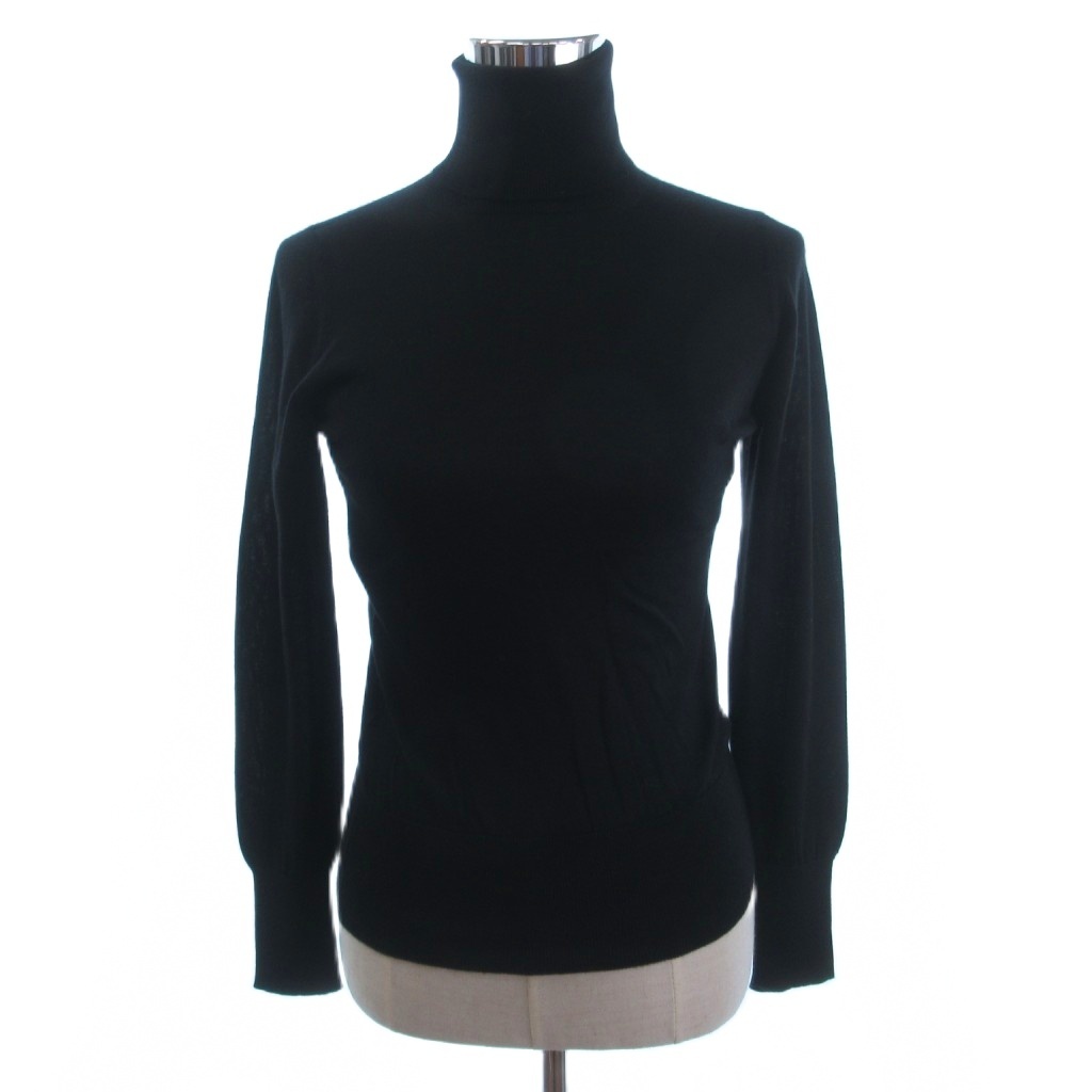 フェンディ FENDI ニット セーター 長袖 タートルネック カシミヤ シルク混 無地 黒 ブラック 40 レディース